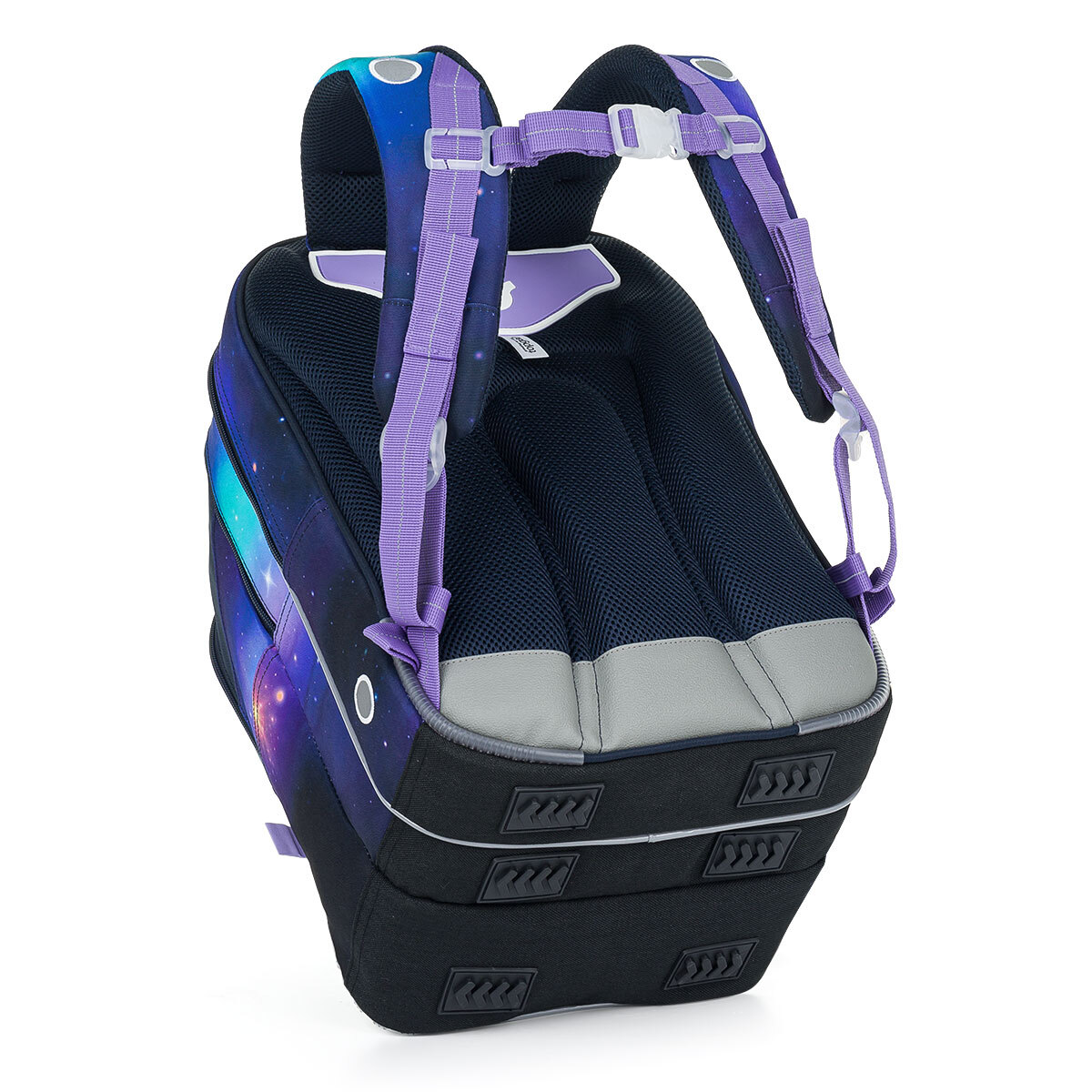 Model BEBE predstavuje ideálny kompromis medzi aktovkou a školským batohom, určený pre malých školákov od výšky 110 cm. Školská aktovka je navrhnutá s maximálnym dôrazom na potreby budúcich prváčikov – je ľahká, prehľadná a výborne sedí na detskom chrbte. Hravý vesmírny dizajn plný planét, rakiet a galaxií rozžiari oči každého malého objaviteľa pripraveného vydať sa na svoju prvú školskú misiu. Aktovka disponuje pevnou, ergonomicky tvarovanou chrbtovou časťou, ktorá podporuje správne držanie tela, a pohodlnými, mäkko polstrovanými ramennými popruhmi, ktoré sa jednoducho prispôsobia detskej postave. Vďaka stabilnej konštrukcii si aktovka zachováva svoj tvar a bez problémov samostatne stojí. Vnútorný priestor je prakticky členený, čo umožňuje jednoduchú organizáciu školských potrieb. Samozrejmosťou sú aj reflexné prvky, ktoré zvyšujú bezpečnosť dieťaťa na ceste do školy i zo školy. Dizajn aktovky je možné zladiť s ďalšími doplnkami – k rovnakému motívu odporúčame pridať aj školský peračník PENN 26013, a vytvoriť tak dokonale zladenú školskú súpravu. BEBE 26013 je ideálnou voľbou pre prvé školské roky – spája funkčnosť, pohodlie a hravý vesmírny dizajn, ktorý si deti okamžite zamilujú. Hlavné vlastnosti: hmotnosť: 1 080 gramov pevná lisovaná chrbtová časť s hliníkovou výstužou jedna komora s nepremokavým organizérom a dve menšie vrecká reflexné prvky: vpredu, po bokoch a na ramenných popruhoch magnetky na koncoch ramenných popruhov pre jednoduché upevnenie ich vlajúcich koncov pevné, nepremokavé dno z materiálu TOPDURA s nožičkami pútka na bedrový pás TOP 24021 a TOP 24022 pútko na zavesenie aktovky o lavicu výškovo nastaviteľný hrudný popruh odnímateľná karabína na kľúče nastaviteľné ramenné popruhy batoh bol testovaný v ITC Zlín PU záter proti dažďu Aktovka sa zmestí iba do darčekovej krabice GIFT BOX CARTOON MAXI! Upozornenie: Pre tento typ aktovky BEBE neodporúčame používať dosky na zošity FOLDER. Vhodné sú iba dosky vo veľkosti A4.