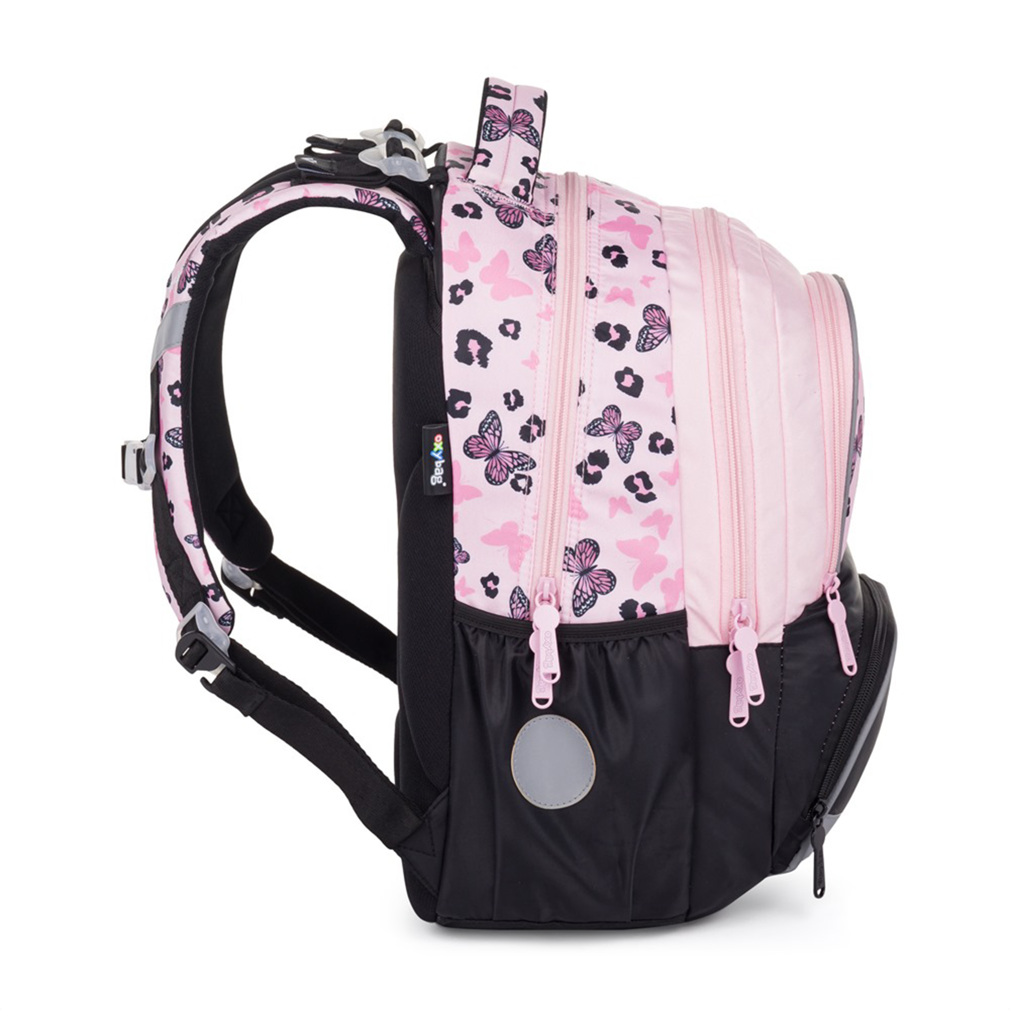 Taška OXY NEXT má po stranách dve väčšie vrecká, čo umožňuje uskladnenie väčších predmetov. S veľkorysým množstvom vreciek a priestorových riešení sa nič v taške nestratí. Batoh obsahuje aj držiak na kľúče alebo školský čip.