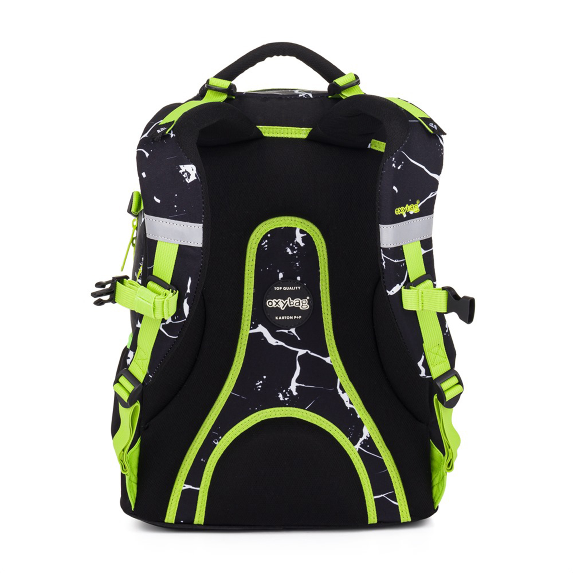 Školský batoh z radu OXY Ombre je perfektnou voľbou pre školákov od 3. triedy. Má anatomicky tvarovaný chrbtový panel, polstrované ramenné popruhy a nastaviteľný hrudný popruh, vďaka čomu poskytuje maximálne pohodlie a oporu pre chrbát. Pevné dno zabezpečuje stabilitu, takže batoh zostane stáť vzpriamene aj pri väčšom zaťažení. Batoh má dve priestranné vrecká na všetky potrebné školské pomôcky, zatiaľ čo bočné elastické vrecká sú ideálne na fľašu s vodou, ktorá je tak vždy ľahko dostupná. Predné vrecko poskytuje priestor na menšiu desiatu alebo drobnosti. Nechýbajú ani reflexné prvky pre lepšiu viditeľnosť a bezpečnosť za zníženej viditeľnosti. Batoh je určený pre deti vysoké od 136 cm, s dĺžkou chrbtového panelu 43 cm. Má objem 28 litrov, hmotnosť 960 g a nosnosť až 8 kg, čo z neho robí ideálneho spoločníka na každý školský deň.