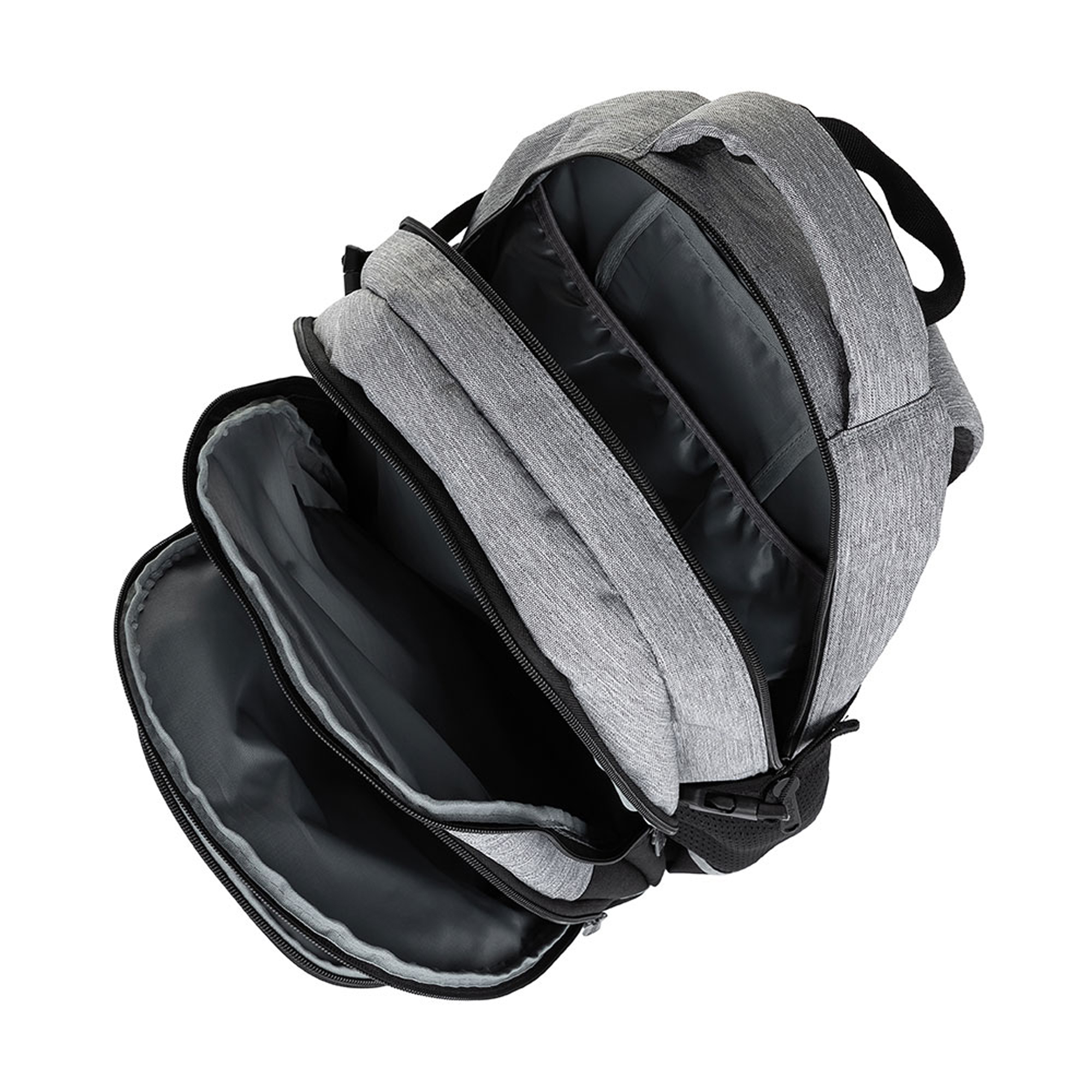 1. **Praktické Úložné Priestory:** Batoh obsahuje vrecko pre notebook do veľkosti až 15", ako aj vrecko s rozraďovačom a karabínkou na kľúče, čo zabezpečuje usporiadané a bezpečné uloženie vašich vecí.