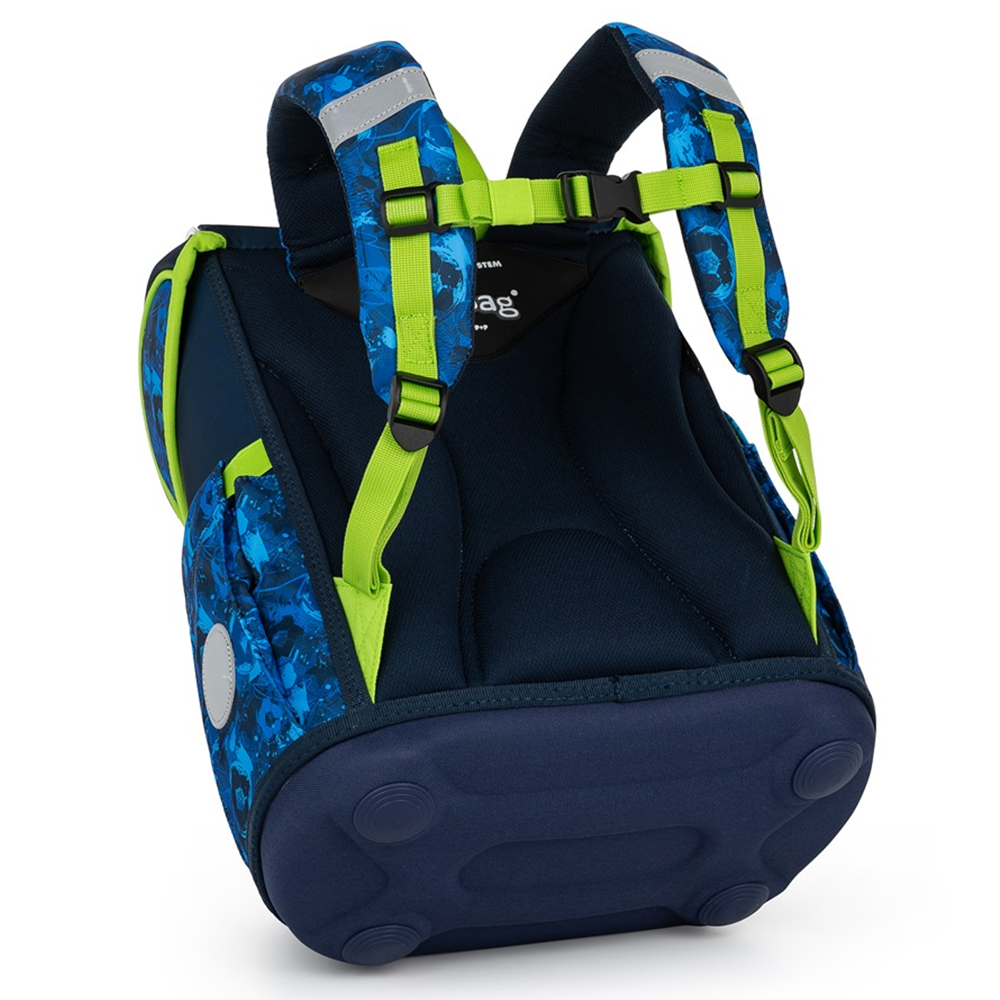 Školská taška, batoh z rady Premium COOL fotbal je spoľahlivým spoločníkom vášho dieťaťa od 1. až po 2. triedu. Dokonale farebne zladeným dizajnom, stabilným pevným dnom a pohodlným nosením sa táto aktovka stáva vynikajúcim kamarátom, ktorý spríjemní život školáka. Už na prvý pohľad si zamilujete túto školskú aktovku: disponuje anatomicky tvarovaným a polstrovaným chrbtom, nastaviteľnými popruhmi (ramennými a hrudnými) a vnútornou výstuhou, ktorá zaručuje perfektný tvar. Pevné dno s nôžkami chráni aktovku pred špinou zvonku a zabezpečuje, že sa vnútri nevyleje nič. Praktické vrecko na desiatu na prednom diele a dve väčšie vrecká po stranách pridávajú na funkcionalite. Praktická pracka zabezpečuje bezpečné zatváranie a reflexné prvky zlepšujú viditeľnosť v šera. Vnútorné usporiadanie tašky je presne prispôsobené potrebám prvákov a druhákov. Do priestrannej hlavnej komory pohodlne sa zmestia všetky potrebné školské pomôcky, pričom je schopná uniesť až 8 kg. Oddelená priehradka udržiava poriadok a na spodnej strane veka je priestor pre menovku alebo rozvrh hodín. Batohy z rady Premium sú certifikované štátnou skúšobňou, čo zaručuje ich kvalitu a bezpečnosť.