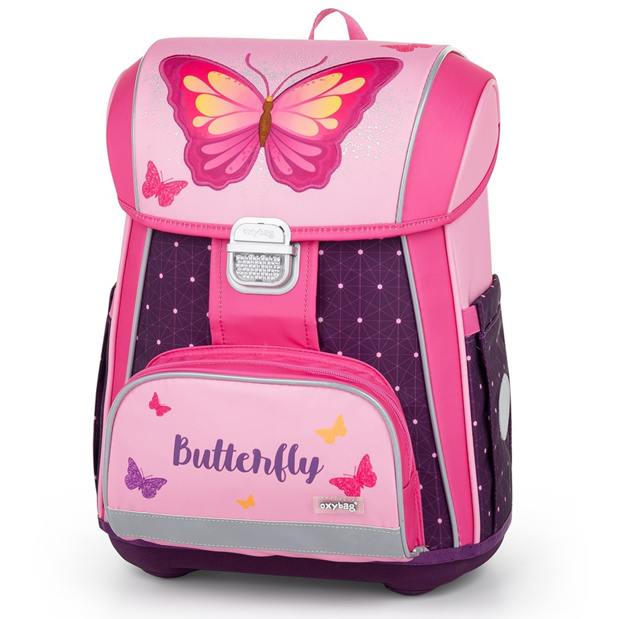 Školská taška, batoh z rady Premium COOL motýl je spoľahlivým spoločníkom vášho dieťaťa od 1. až po 2. triedu. Dokonale farebne zladeným dizajnom, stabilným pevným dnom a pohodlným nosením sa táto aktovka stáva vynikajúcim kamarátom, ktorý spríjemní život školáka. Už na prvý pohľad si zamilujete túto školskú aktovku: disponuje anatomicky tvarovaným a polstrovaným chrbtom, nastaviteľnými popruhmi (ramennými a hrudnými) a vnútornou výstuhou, ktorá zaručuje perfektný tvar. Pevné dno s nôžkami chráni aktovku pred špinou zvonku a zabezpečuje, že sa vnútri nevyleje nič. Praktické vrecko na desiatu na prednom diele a dve väčšie vrecká po stranách pridávajú na funkcionalite. Praktická pracka zabezpečuje bezpečné zatváranie a reflexné prvky zlepšujú viditeľnosť v šera. Vnútorné usporiadanie tašky je presne prispôsobené potrebám prvákov a druhákov. Do priestrannej hlavnej komory pohodlne sa zmestia všetky potrebné školské pomôcky, pričom je schopná uniesť až 8 kg. Oddelená priehradka udržiava poriadok a na spodnej strane veka je priestor pre menovku alebo rozvrh hodín. Batohy z rady Premium sú certifikované štátnou skúšobňou, čo zaručuje ich kvalitu a bezpečnosť.