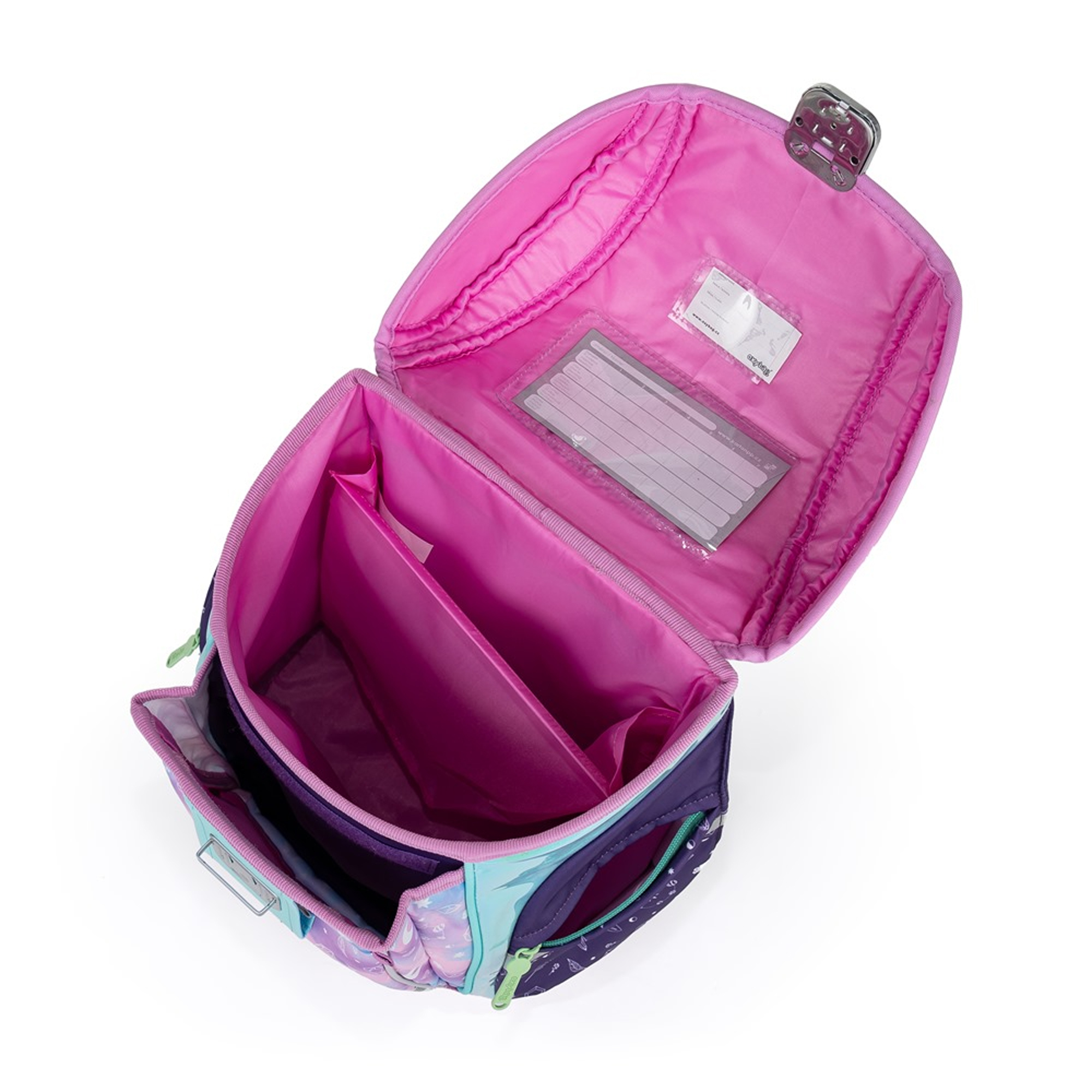 Fyzioterapeut odporúča túto aktovku pre jej schopnosť udržovať stály tvar a správne rozloženie hmotnosti, čím chráni chrbát vášho dieťaťa. Hlavná komora s priehradkou, menovkou a rozvrhom hodín zabezpečuje lepšiu organizáciu, zatiaľ čo nastaviteľné ramenné a hrudné popruhy umožňujú optimálne prispôsobenie detskej postave. Pevné nepremokavé dno s nožičkami zaisťuje stabilitu.