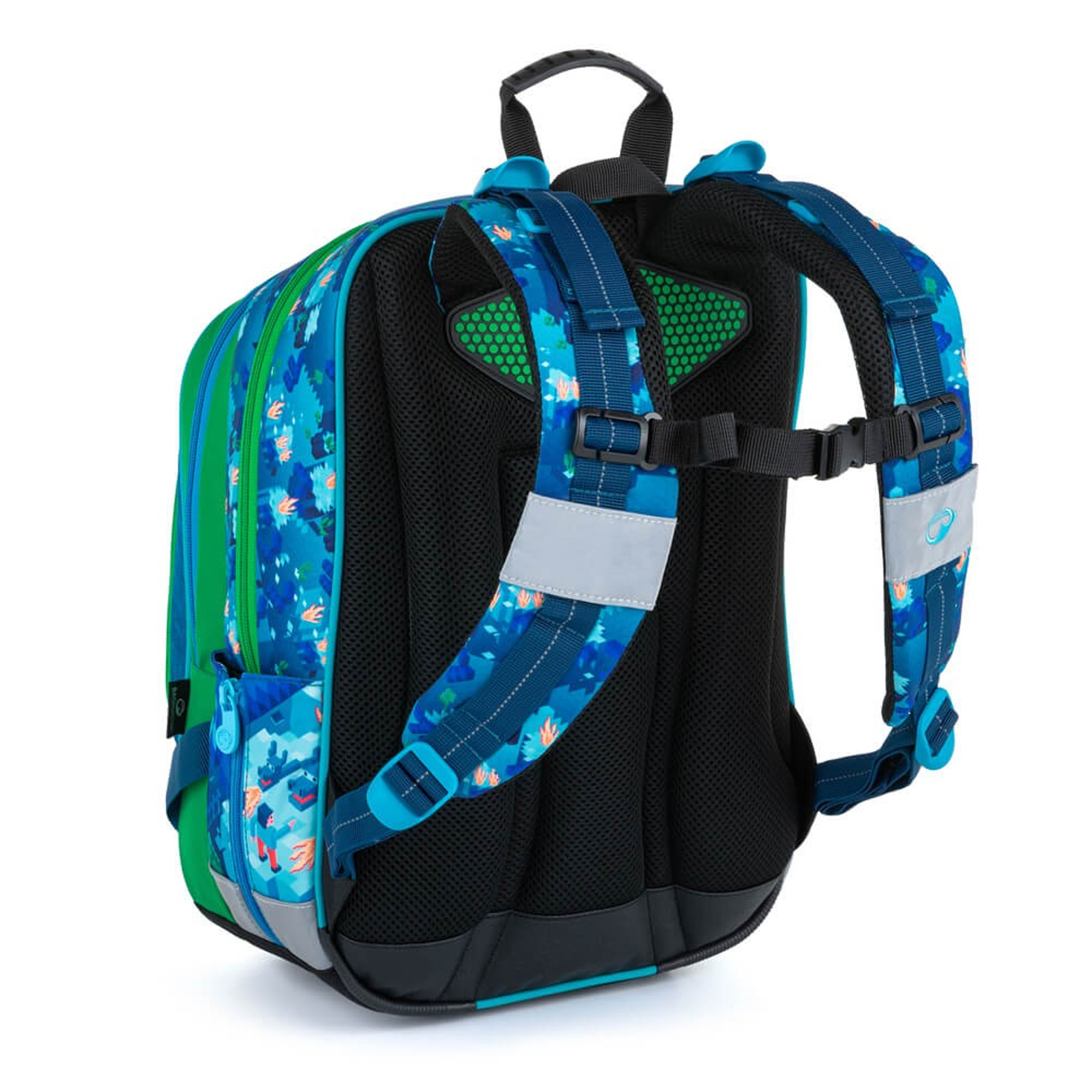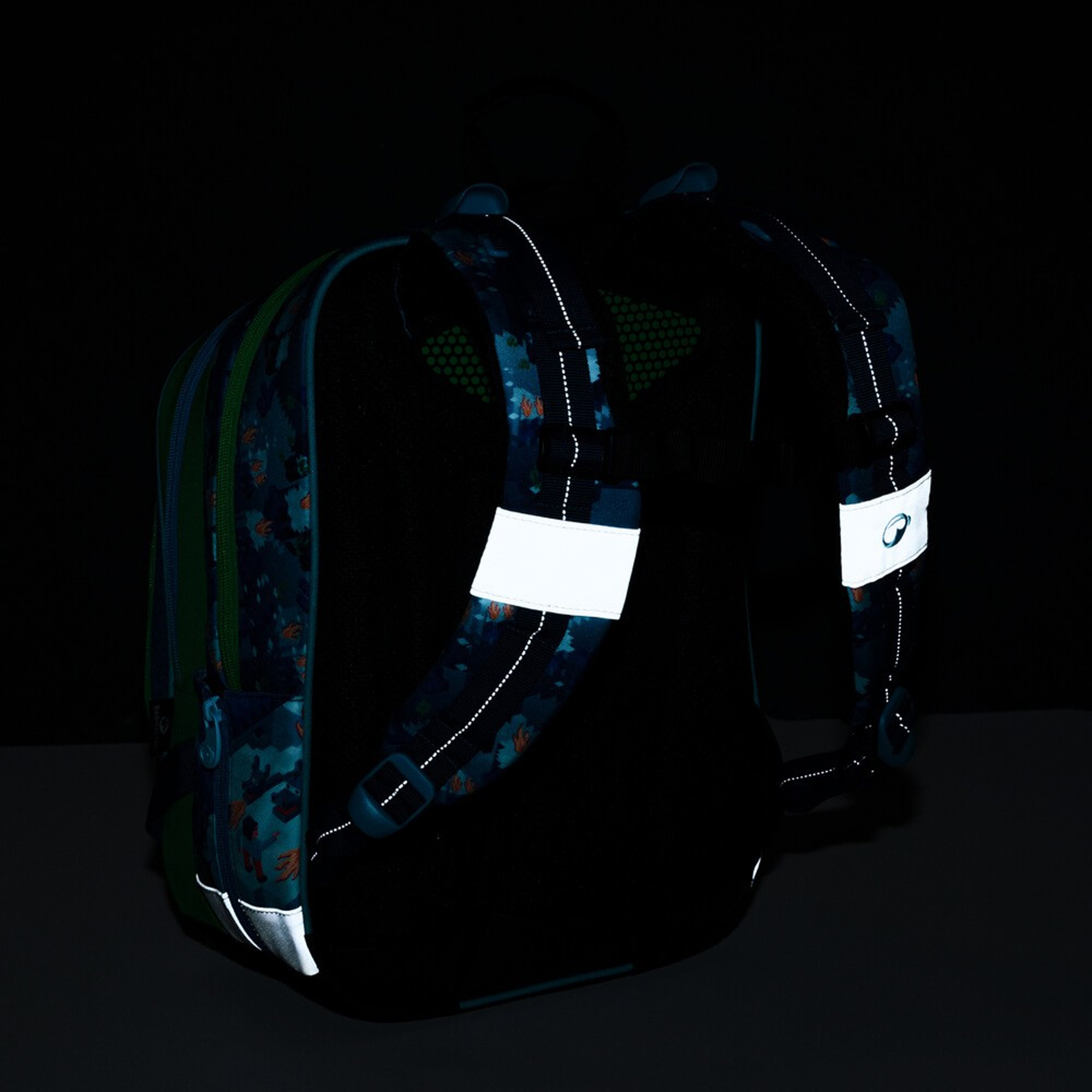 Školská aktovka PREMIUM LIGHT pre prvákov je vizuálne atraktívna aj ergonomicky dokonalá. Poskytuje maximálne pohodlie a podporu na nosenie. Navrhnutá pre deti s výškou od 121 cm, táto aktovka je ideálna pre prvákov a druhákov. S nízkou hmotnosťou iba 970 g a reflexnými prvkami je nielen praktická, ale aj bezpečná. Anatomicky tvarovaný chrbát, polstrovaná z príjemného priedušného materiálu. Mäkké a široké ramenné popruhy zaisťujú dokonalé a pohodlné nosenie. Fyzioterapeut odporúča túto aktovku pre jej schopnosť udržovať stály tvar a správne rozloženie hmotnosti, čím chráni chrbát vášho dieťaťa. Hlavná komora s priehradkou, menovkou a rozvrhom hodín zabezpečuje lepšiu organizáciu, zatiaľ čo nastaviteľné ramenné a hrudné popruhy umožňujú optimálne prispôsobenie detskej postave. Pevné nepremokavé dno s nožičkami zaisťuje stabilitu. Jednoposchodový peračník s dvoma chlopňami a gumovými pútkami na uchytenie písacích potrieb je pripravený na obľúbené písacie potreby vašich malých školákov. Vrecko na prezuvky vyrobené z kvalitného materiálu. S uzatváraním šnúrok je praktické a jednoduché použitie.