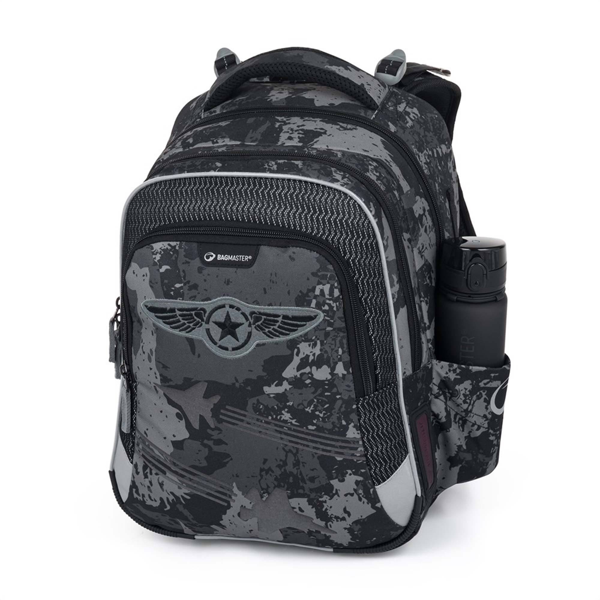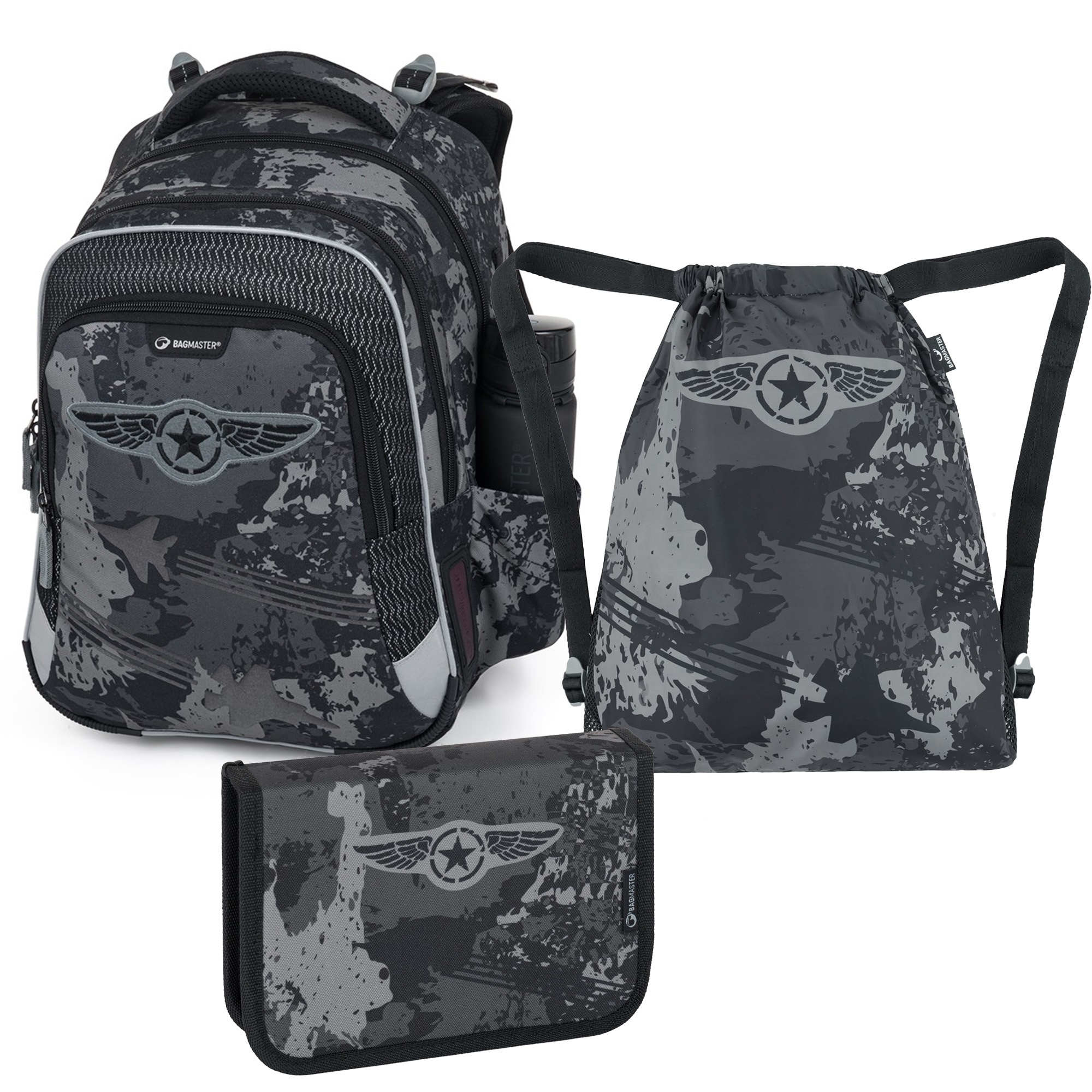 Batoh má tiež praktický organizér v prednom vrecku na mobilný telefón, ceruzky a ďalšie drobnosti, ako aj možnosť pripojiť sieťovanú tašku na čiernu pracku. Reflexné prvky na batohu zvyšujú bezpečnosť v tme, zatiaľ čo skladacia spodná časť uľahčuje usporiadanie učebníc. Tento vojenský set je ideálnym riešením pre malých školákov, ktorým poskytuje maximálny komfort a praktické vlastnosti pre každodenné školské aktivity.