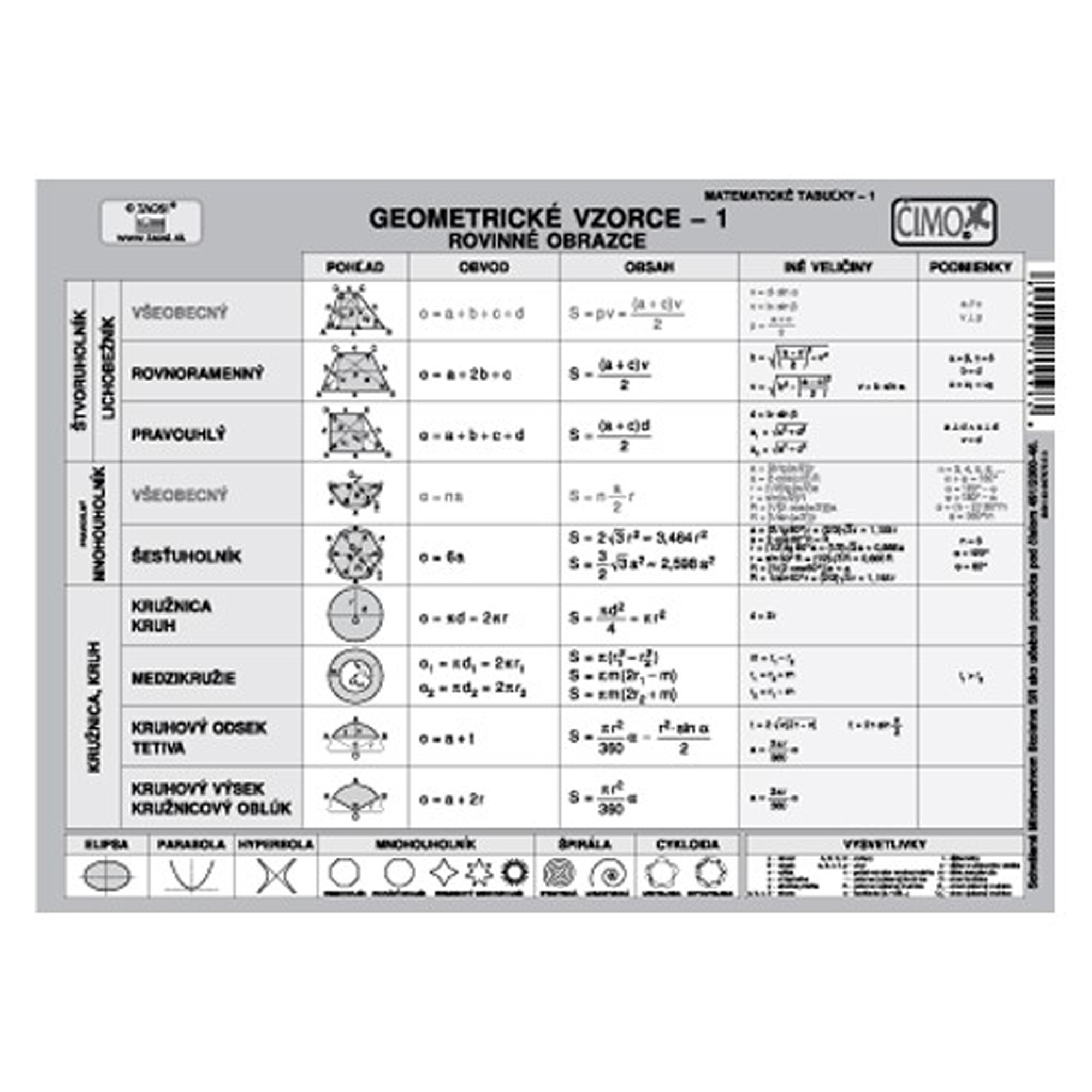 Obojstranné kartay matematika, geometrické vzorce - vzorce. Rozmer 181x131mm