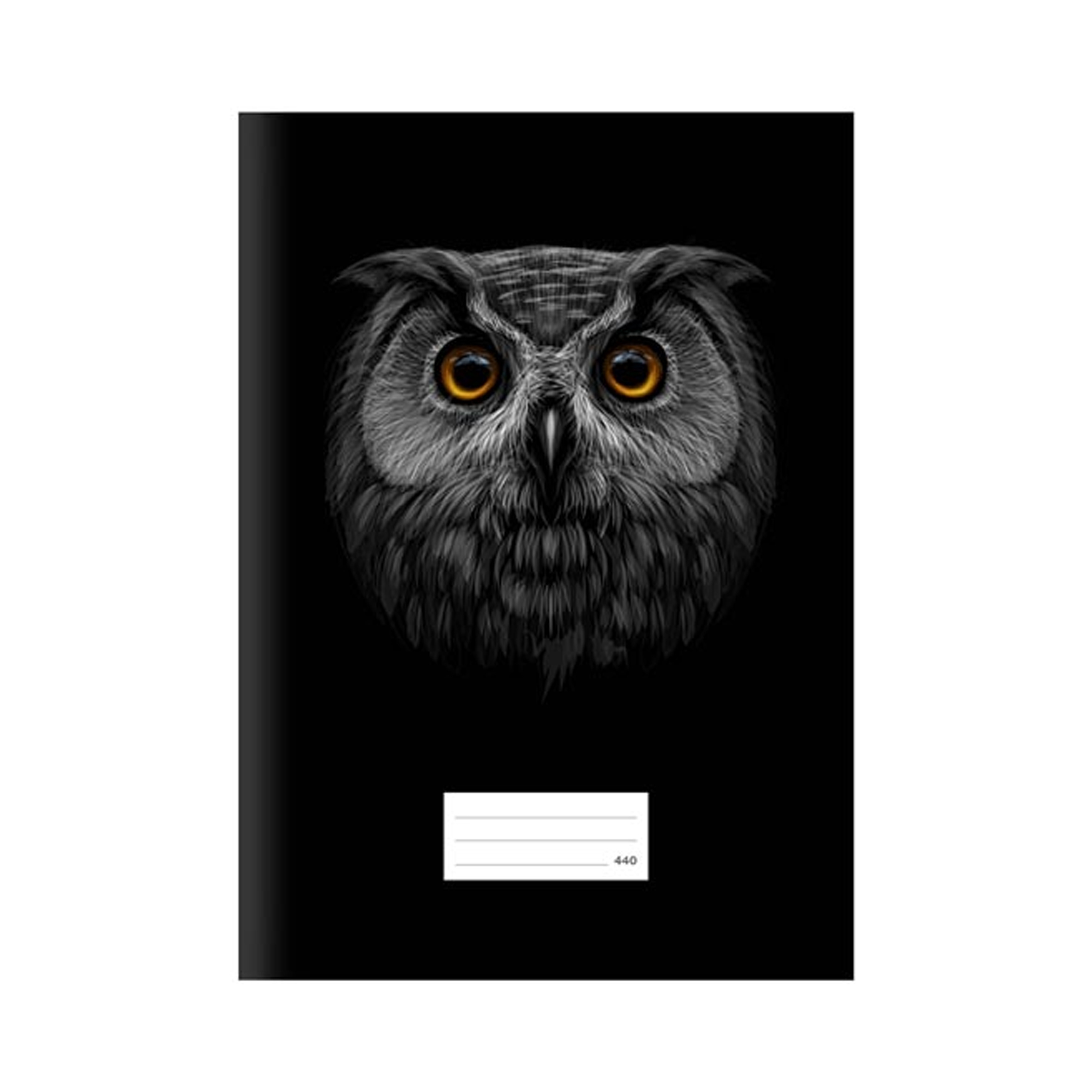 Školský zošit 440 s motívom sovy, čierna matná obálka