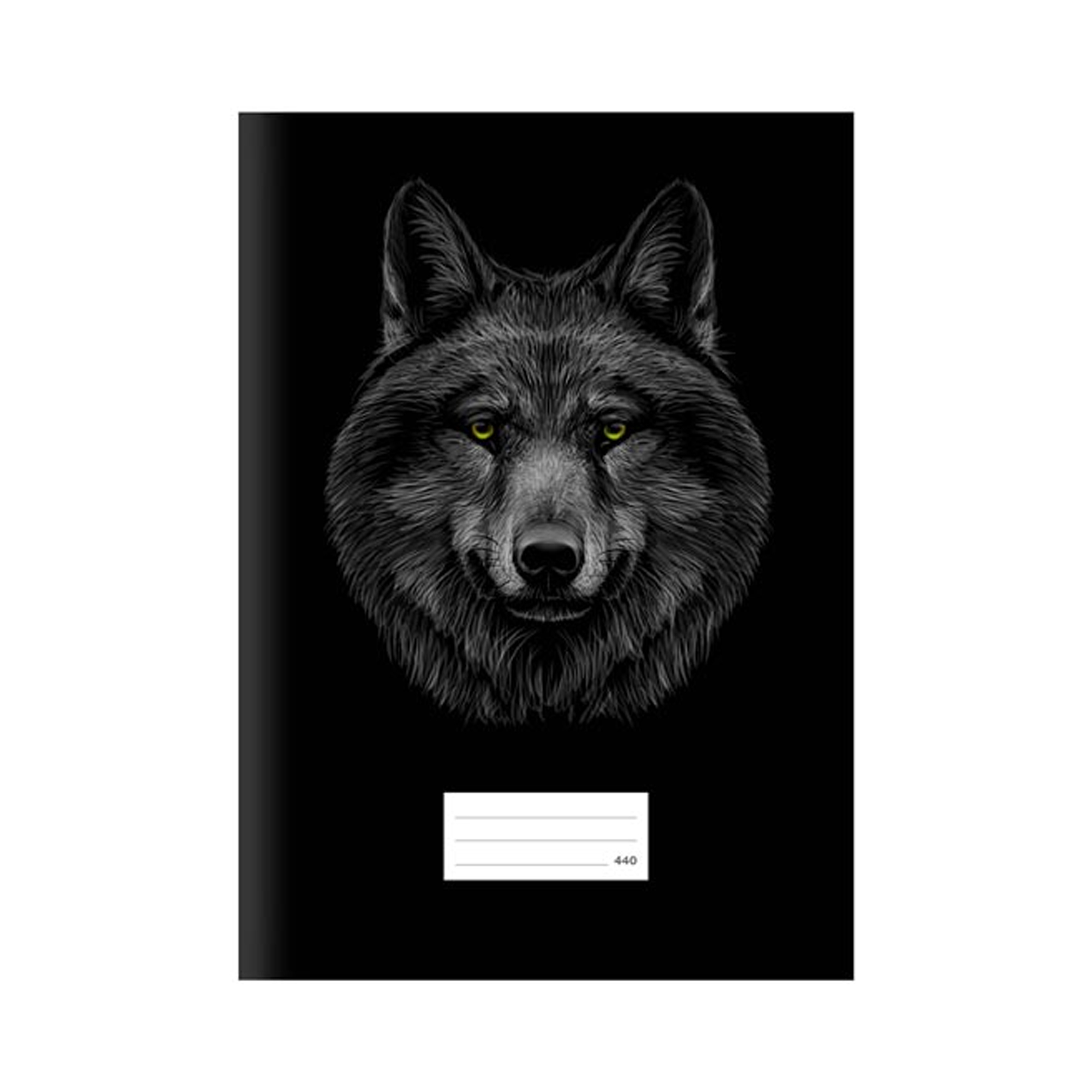 Školský zošit 440 s motívom vlka, čierna matná obálka