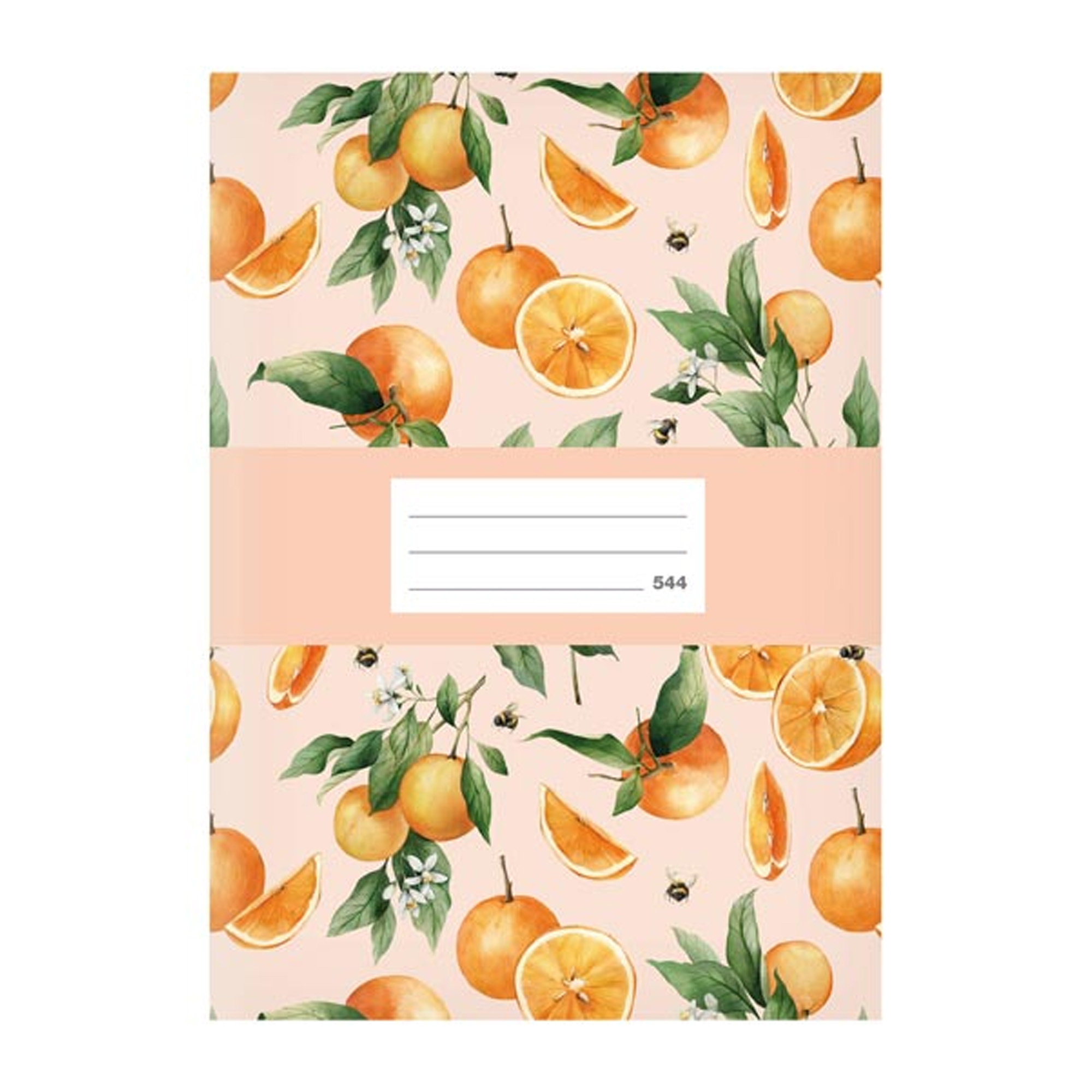 Školský zošit 544 linajkový A5, s motívom pomarančov, v originálnych doskách z 300g kriedového papiera s matným laminom a UV lakom. Stránky sú bez okrajov