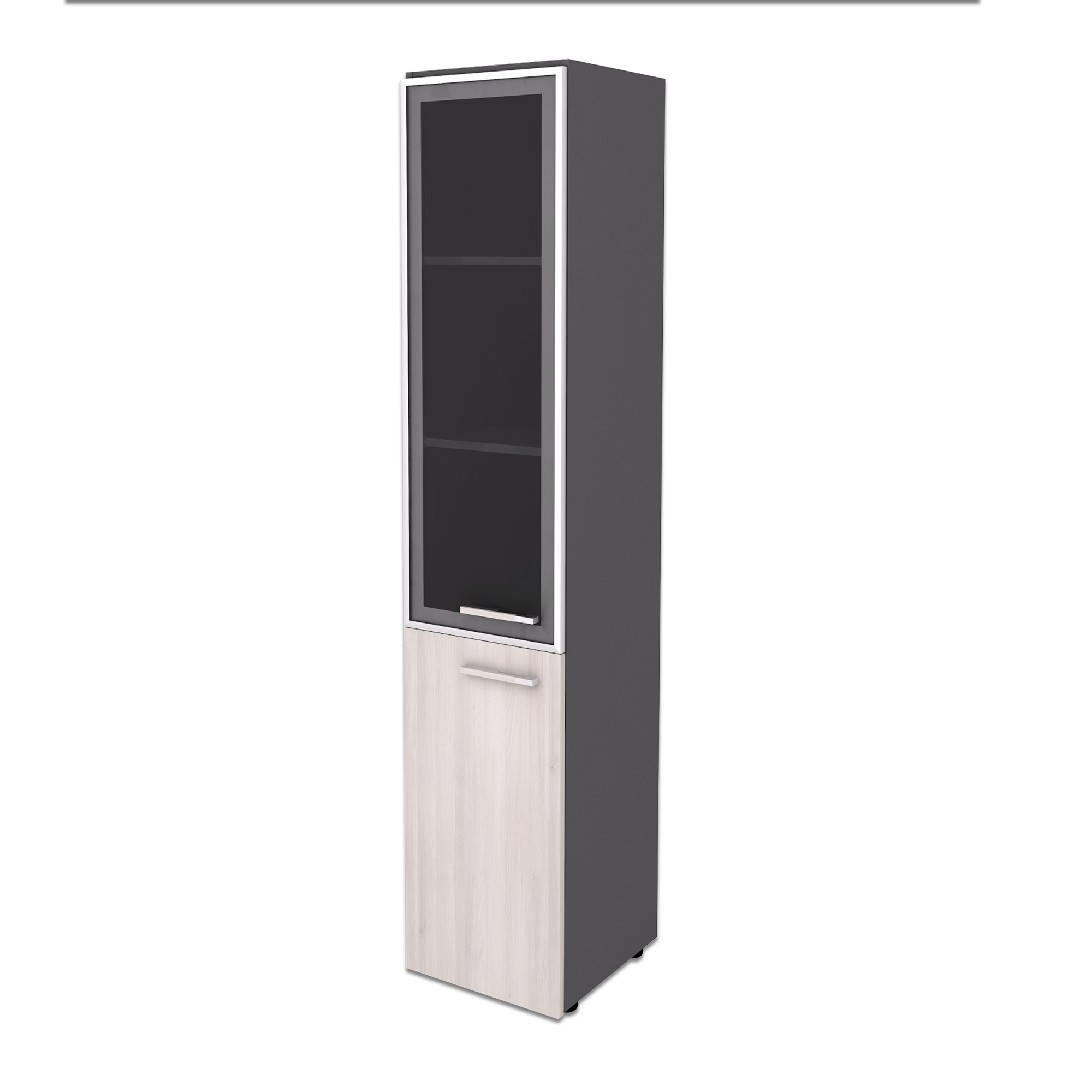Skriňa kombi. úzka L Office Wels 39,9x42,5x196,5cm, sklo/agát svetlý