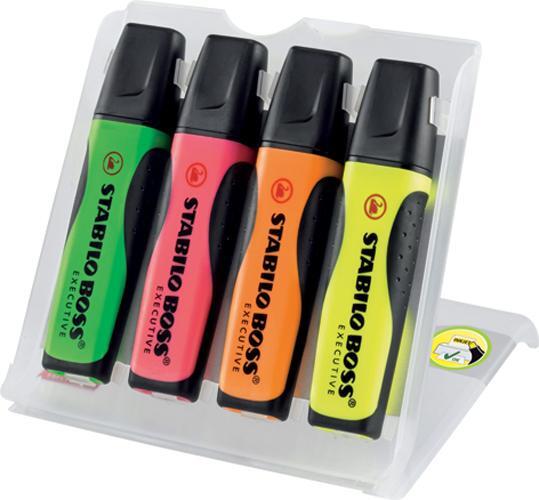 Rekordman a jednička na trhu medzi zvýrazňovačmi. Značková kvalita od samotného vynálezcu zvýrazňovača. Vďaka schopnosti vydržať dlho bez viečka je STABILO BOSS ORIGINAL ideálnym pomocníkom pre náročné čitanie a učenie. Vysoký výkon zvýraznenia stoviek metrov textu v rovnakej intenzite do poslendého centimetra. Náplň s fluorescentnou farbou na vodnej báze so špeciálnym hrotom. Stopa písania 2 - 5 mm. Väčšie balenie 10 ks v jednej farbe. - Farba: sada 4 ks zvýrazňovačov - Balenie: 1 ks
