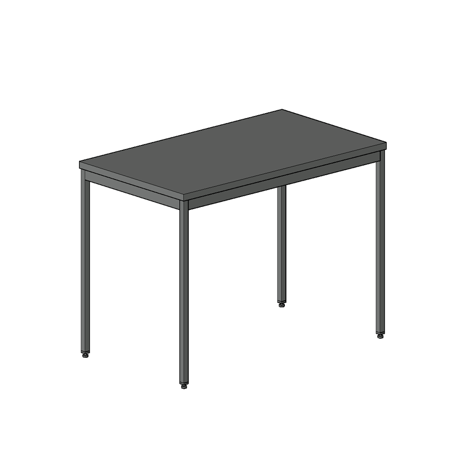 Univerzálny stôl s kovovými nohami pre všestranné využitie. Je vhodný do kancelárii, administratívnych priestorov, kuchyniek, jedálni atď. Nohy sú vyrobený z kvalitných oceľových profilov svetlošedej farby. Pracovná doska je vyrobená zo šedej laminovanej drevotriesky. Dodáva sa v demonte,