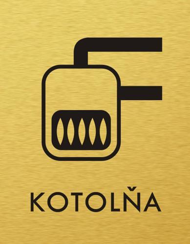 Samolepiaci štítok s grafickým znázornením určený na označenie miestností. Je vyrobený z kvalitného plastu vo farbe zlatého eloxu v hrúbke 1,6mm. Text je gravírovaný lasserovou technológiou, teda bez použitia farby.