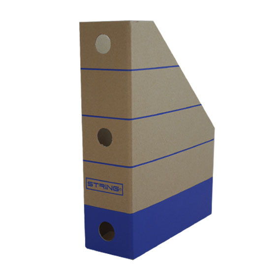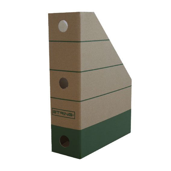Pevný papierový stojan na časopisy vyrobený z lakovaného kartónu. Je určený najme na ukladanie časopisov, katalógov, cenníkov a pod., do formátu A4. Má hladký lakovaný povrch. Je ľahko zostaviteľný. Pre jednoduchšie uchopenie v chrbte má vyrezaný otvor. Šírka chrbta 80 mm. Väčšie balenie 10 ks