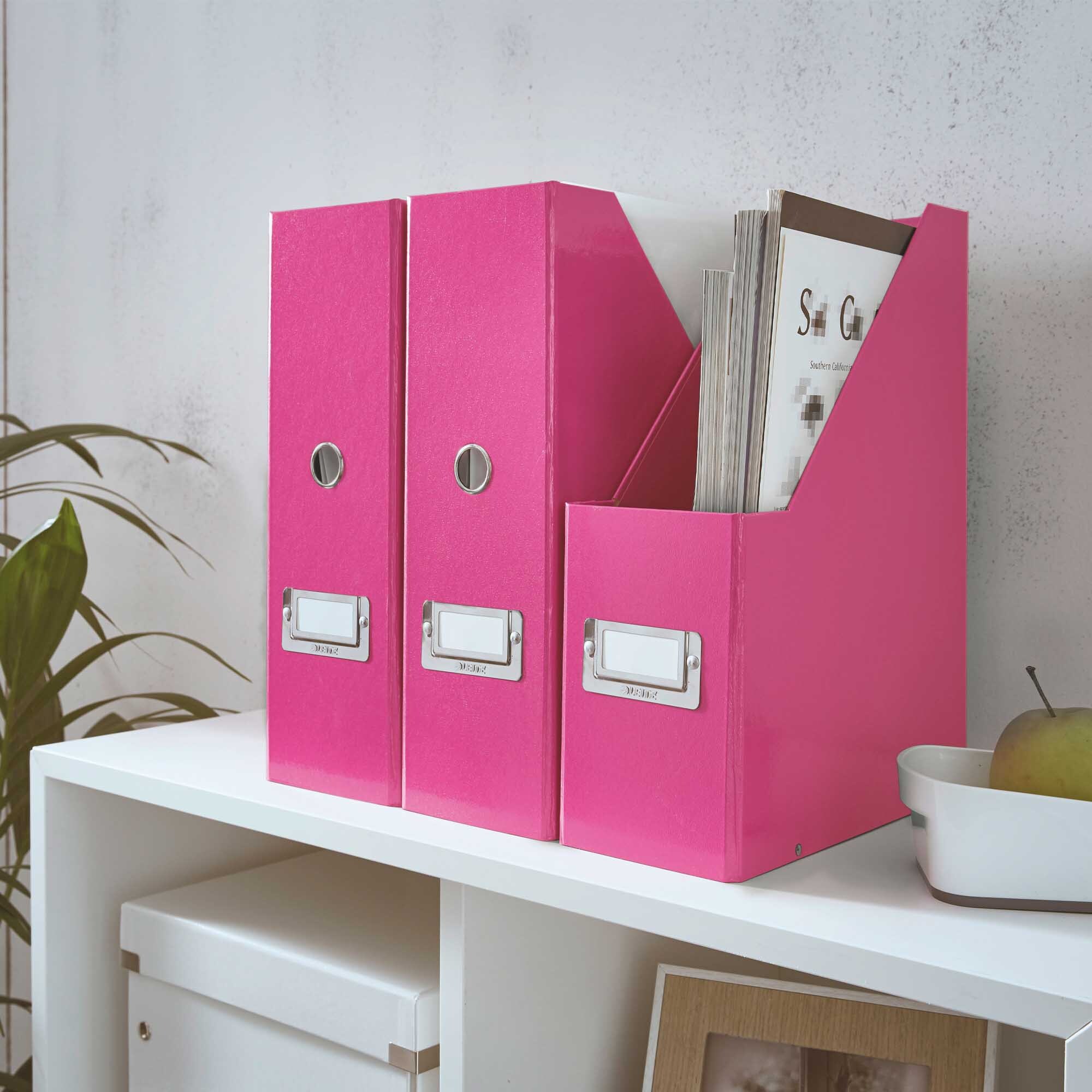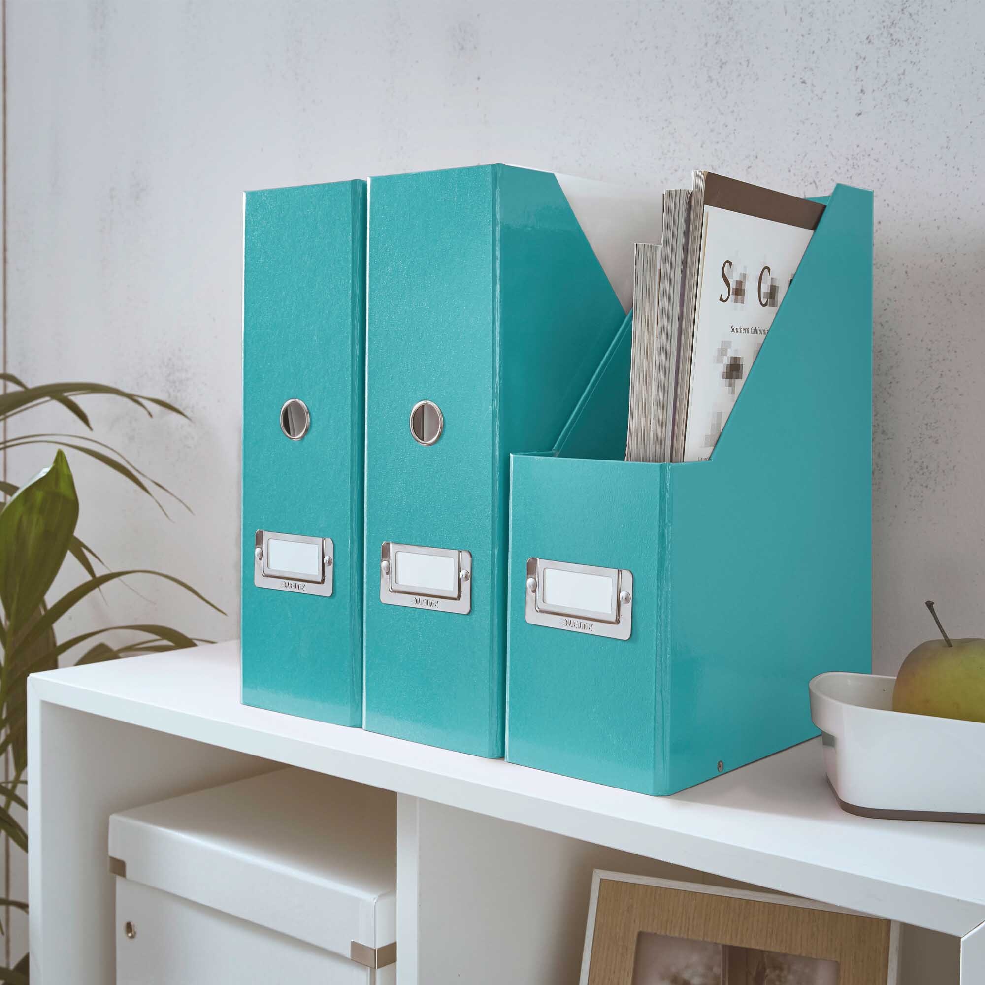 Atraktívny a štýlový stojan na časopisy s rámčekom na popisovací štítok z prednej a zadnej strany. Perfektný na uloženie katalógov, brožúr, časopisov alebo objemných dokumentov a ich jednoduchú dostupnosť. Kvalitné kovové rámčeky s kontrastnými bielymi štítkami na jednoduché rozpoznanie obsahu. Vyrobené z hrubého kartónu s laminovaným povrchom pre lepšiu a trvalejšiu ochranu. Lesklé PP vyhotovenie vytvára prvotriedny vzhľad škatule a umožňuje dlhodobé používanie a jednoduché utieranie prachu. Patentovaná skladacia konštrukcia zaručuje vyššiu ochranu proti náhodnému rozloženiu - skladacia kvôli úspore miesta, ak sa nepoužíva.. Moderný dizajn, ktorý sa bude skvele vynímať v každej kancelárii aj doma. Dodajte svojmu pracovnému miestu alebo domácnosti farbu a skombinujte stojan na časopisy s ostatnými kancelárskymi výrobkami v žiarivých farbách z radu Leitz WOW.