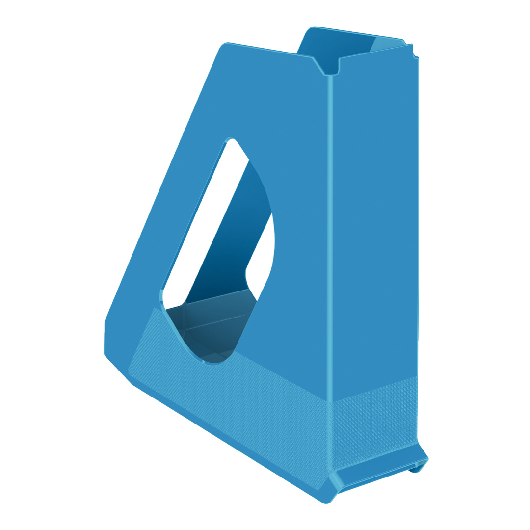 Stojan na časopisy jedinečného dizajnu radu Leitz Allura. Na ukladanie dokumentov formátu A4+. Ponúkaný v modrých farebných kombináciách, vždy s využitím transparenstných materiálov. Chrbtový otvor pre lepšiu manipuláciu, nízky okraj pre pohodlný prístup k dokumentom, netradičné umiestnenie štítku medzi dve plastové vrstvy na chrbte stojanu. Rozmery: 75 x 311 x 264 mm jedinečného dizajnu radu Leitz Allura na dokumenty formátu A4+.