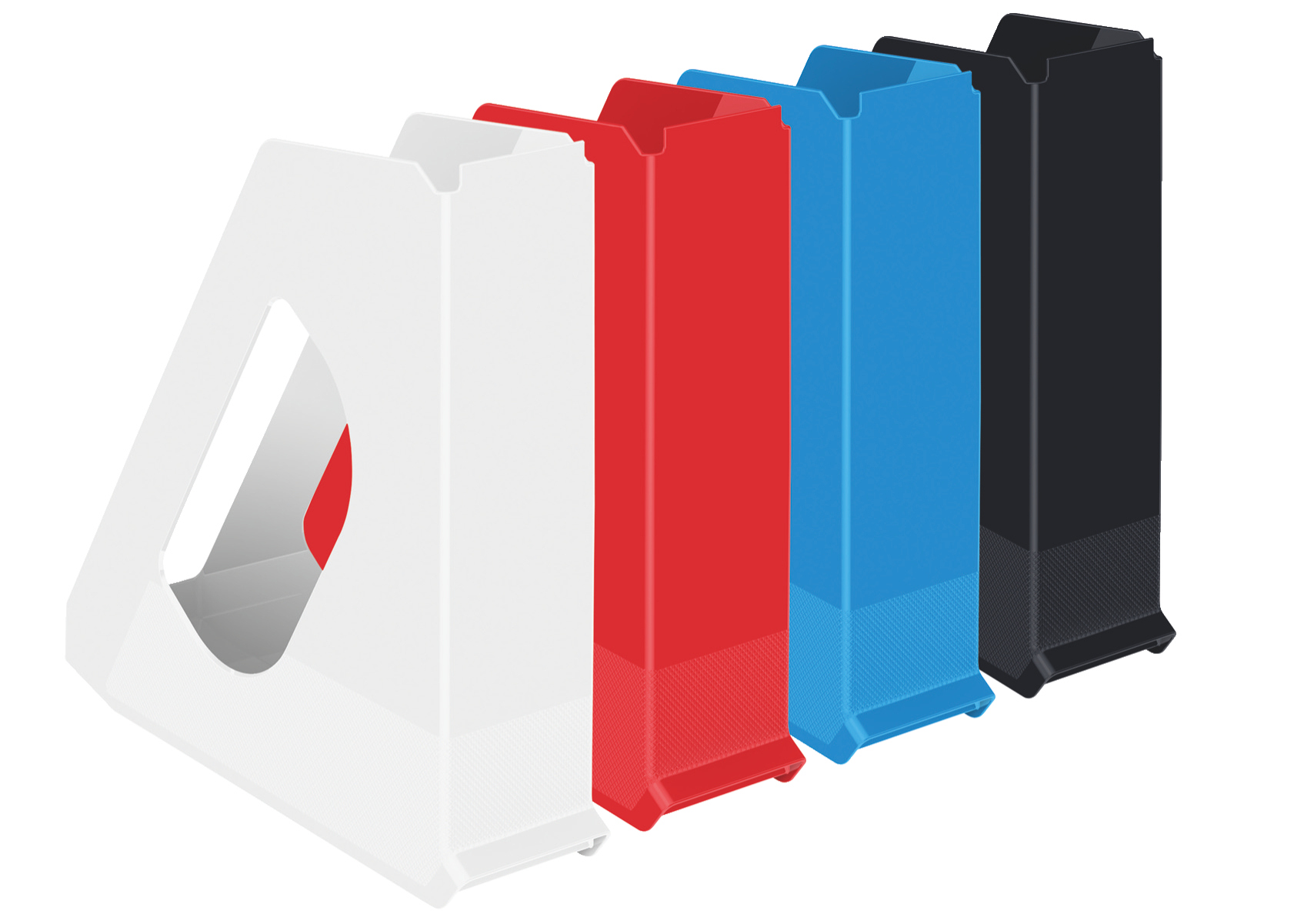 Plastový odkladač v modernom dizajne vo sviežej farbe VIVIDA s pekným reliéfnym štvorčekovaným vzorom. Dokonale dopĺňa ostatné produkty radu Europost a VIVIDA. Jedinečná textúra bočnej steny rozjasní pracovisko. Stabilné stohovanie v dvoch polohách kolmo a predradene. Zaoblený predný výrez pre ľahký prístup k dokumentom. Rozmery 254x350x61mm. Farba červená. Väčšie balenie 10ks -Balenie 10 ks