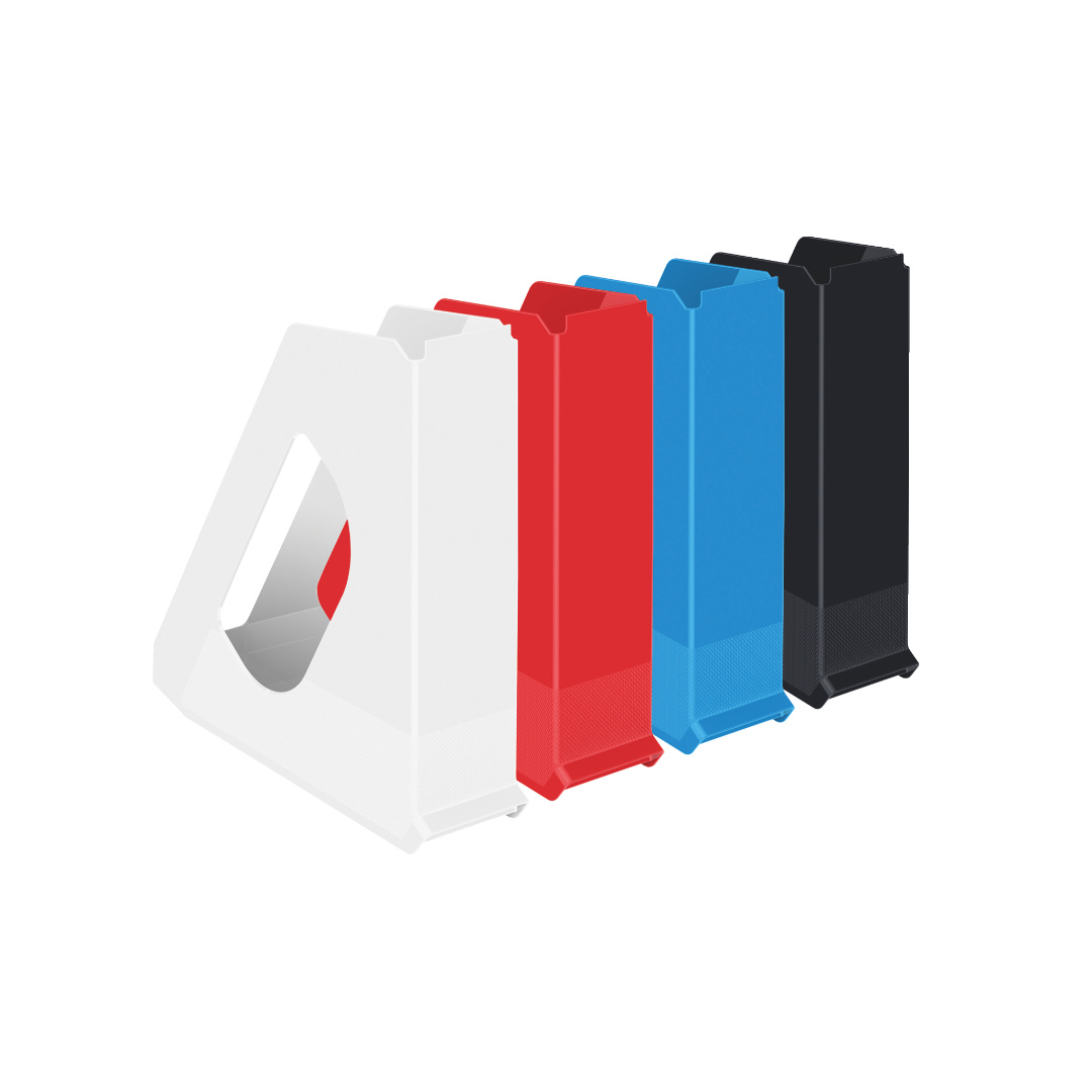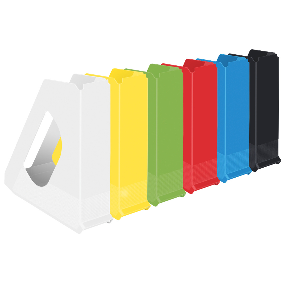 Stolový kancelársky odkladač WOW s možnosťou stohovania kolmo, alebo šikmo. Vyššie bočné steny a extra veľký výrez prednej časti umožnuje jednoduchý prístup k dokumentom. Ponuka žiarivých farieb pre výnimočné pracovné prostredie sa skvele doplňuje s ďalšími výrobkami radu WOW. Stohovateľnosť do 10 odkladačov. Rozmery 255 x 70 x 357 mm Väčšie balenie 5ks