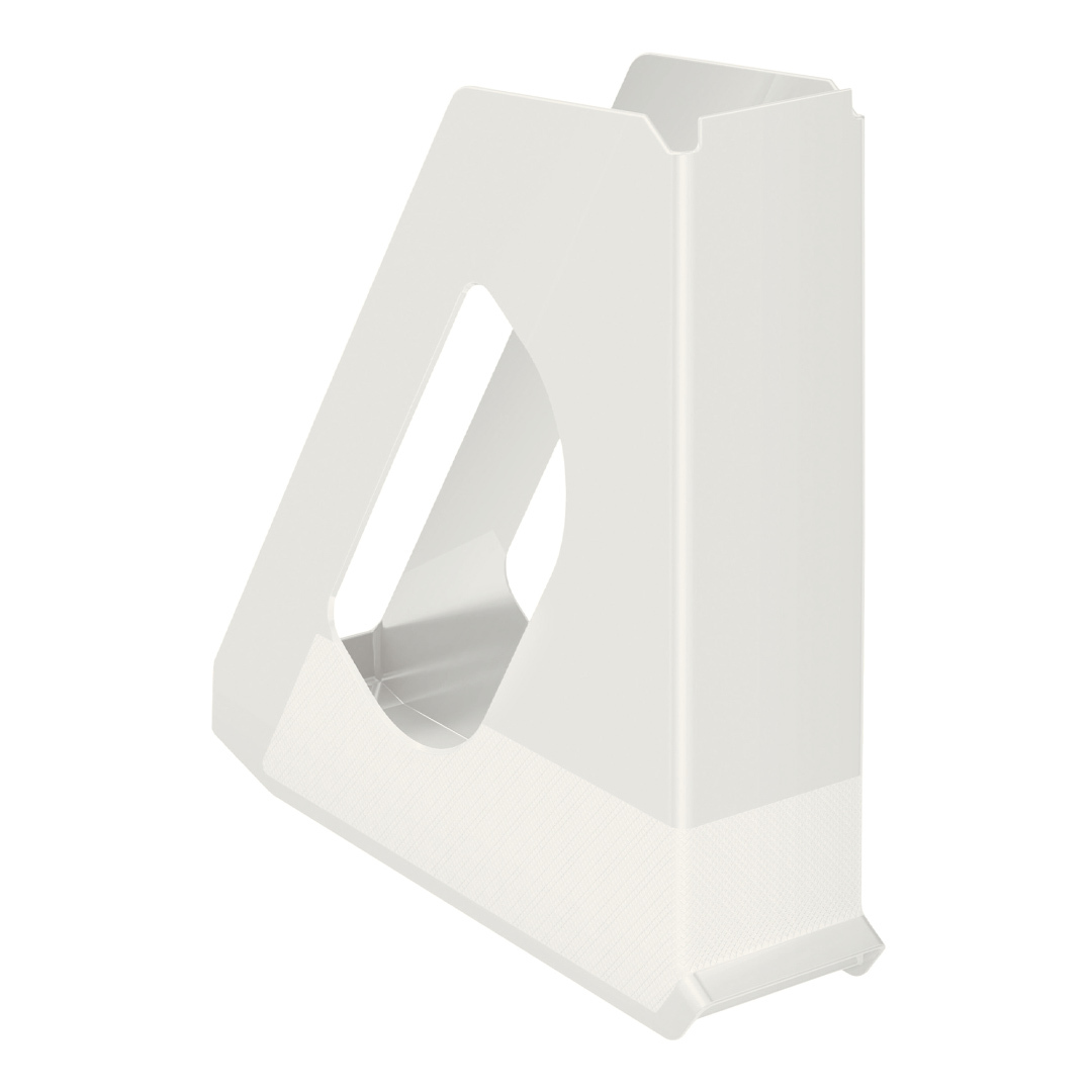 Stojan na časopisy, ktorý so svojím designom. Farbami ladí s odkladačmi Esselte Europost. Formát A4, kapacita ukladania 68 mm. Ľahká identifikácia vložených dokumentov vďaka zníženej výške stojanu na 25,6 cm. Vonkajšia plocha chrbta je hranatá, možnosť označenia lepiacim štítkom ( nie je súčasťou výrobku ). Rozmery: 72 x 256 x 260 mm. Farba: dymová