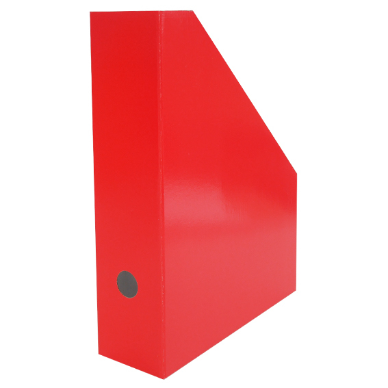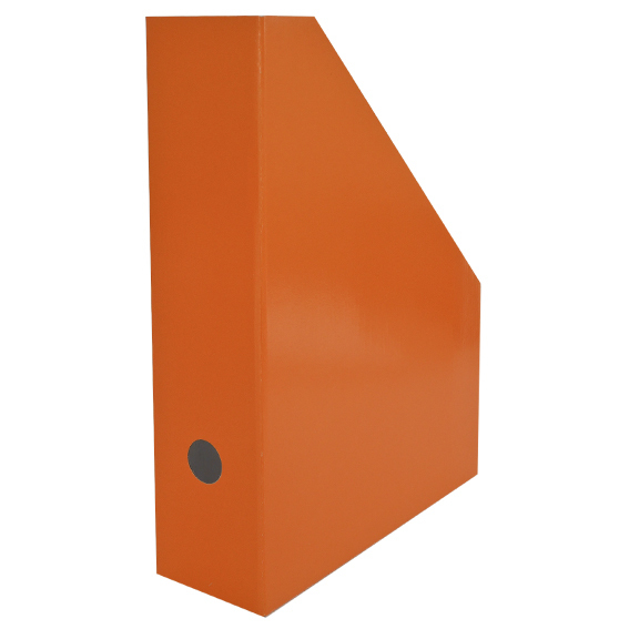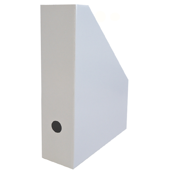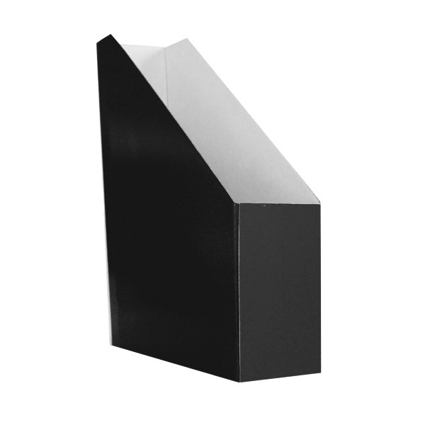Pevný papierový stojan na časopisy vyrobený z lakovaného kartónu. Je určený najme na ukladanie časopisov, katalógov, cenníkov a pod., do formátu A4. Má hladký lakovaný povrch. Je ľahko zostaviteľný. Pre jednoduchšie uchopenie v chrbte má vyrezaný otvor. Šírka chrbta 80 mm. Väčšie balenie 10 ks