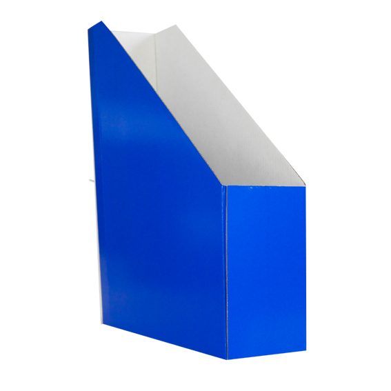 Stojan na časopisy vyrobený z vlnitej lepenky. Je určený najme na ukladanie časopisov, katalógov, cenníkov a pod., do formátu A4. Pre jednoduchšie uchopenie v chrbte má vyrezaný otvor.. Šírka chrbta 80 mm. Ľahko zostaviteľný. Balenie 10 ks