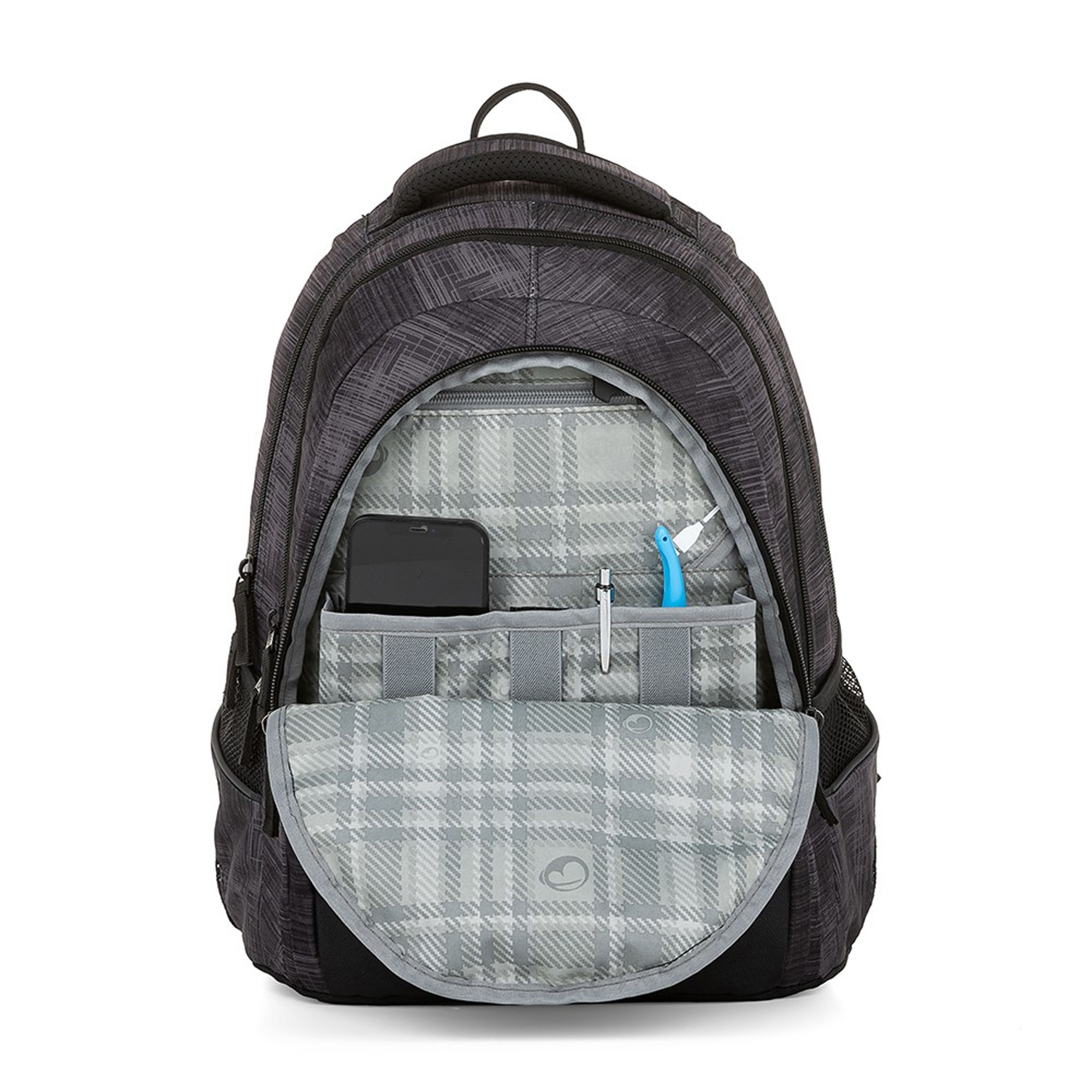 Batoh disponuje tromi veľkými priehradkami, vrátane praktického organizéra v prednej komore a skrytého vrecka na zips na zadnej strane, čo umožňuje efektívne usporiadanie školských potrieb a osobných vecí. Bočné vrecká s elastickou gumou sú ideálne na fľašu na pitie, zatiaľ čo výrazné reflexné prvky zabezpečujú viditeľnosť a bezpečnosť počas rôznych poveternostných podmienok a denných časov