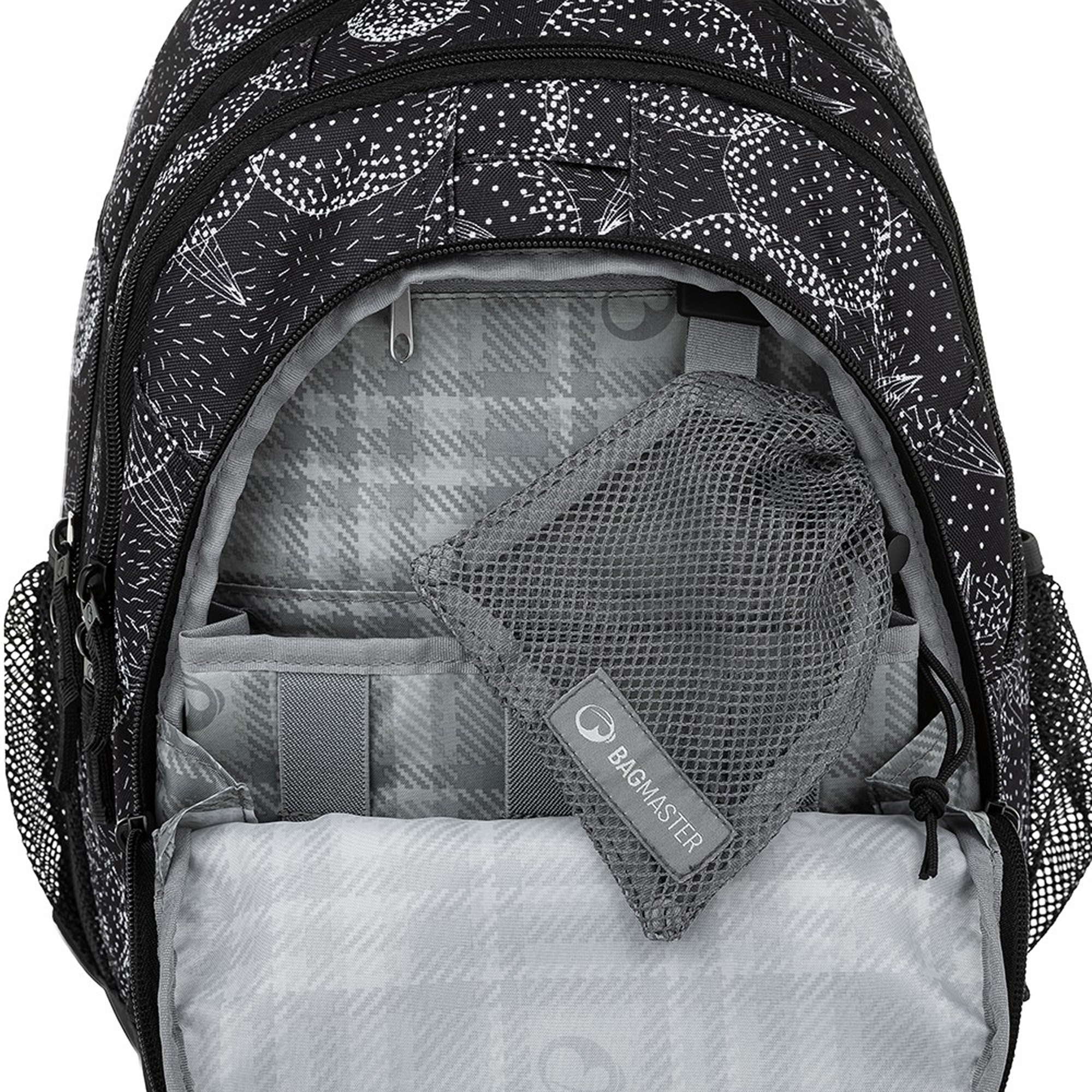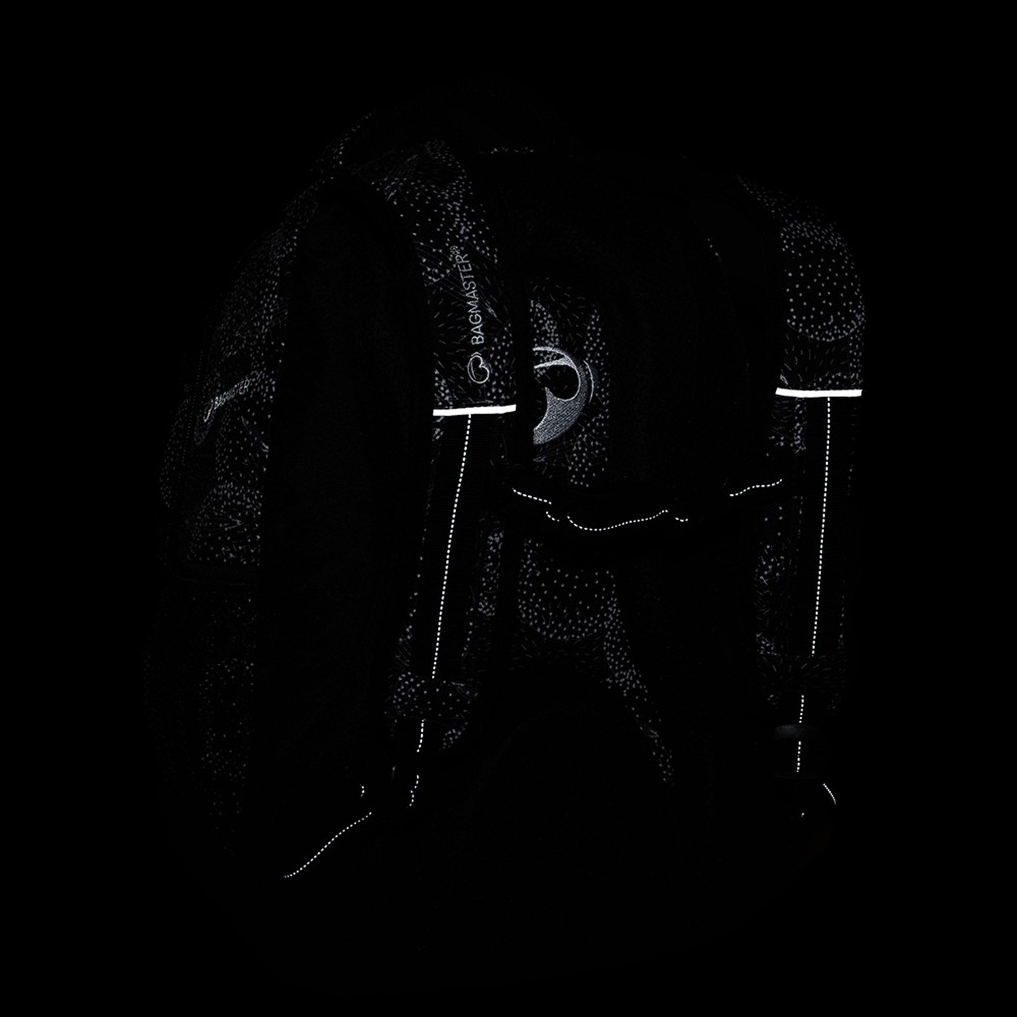 Trojkomorový študentský batoh Bagmaster Energy je ideálny pre dievčatá od 4. triedy. Súčasťou je puzdro na ceruzky, vrecko na notebook a vývod na slúchadlá. Ergonomický dizajn a polstrovanie zabezpečujú pohodlné nosenie a správne držanie tela. Batoh váži len 0,7 kg a jeho reflexné prvky zvyšujú viditeľnosť v tme. Čiernobiely motív je elegantný a nadčasový.