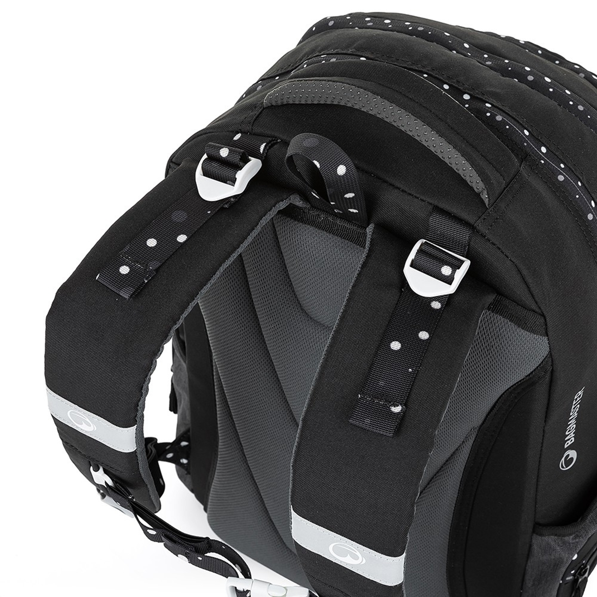 Batoh je vhodný pre dievčatá od 4. ročníka až po druhý stupeň základnej školy alebo prvé ročníky viacročného gymnázia. Súčasťou je aj farebne zladený peračník. Jednoduchý čiernobiely dizajn zaručuje štýlový vzhľad.