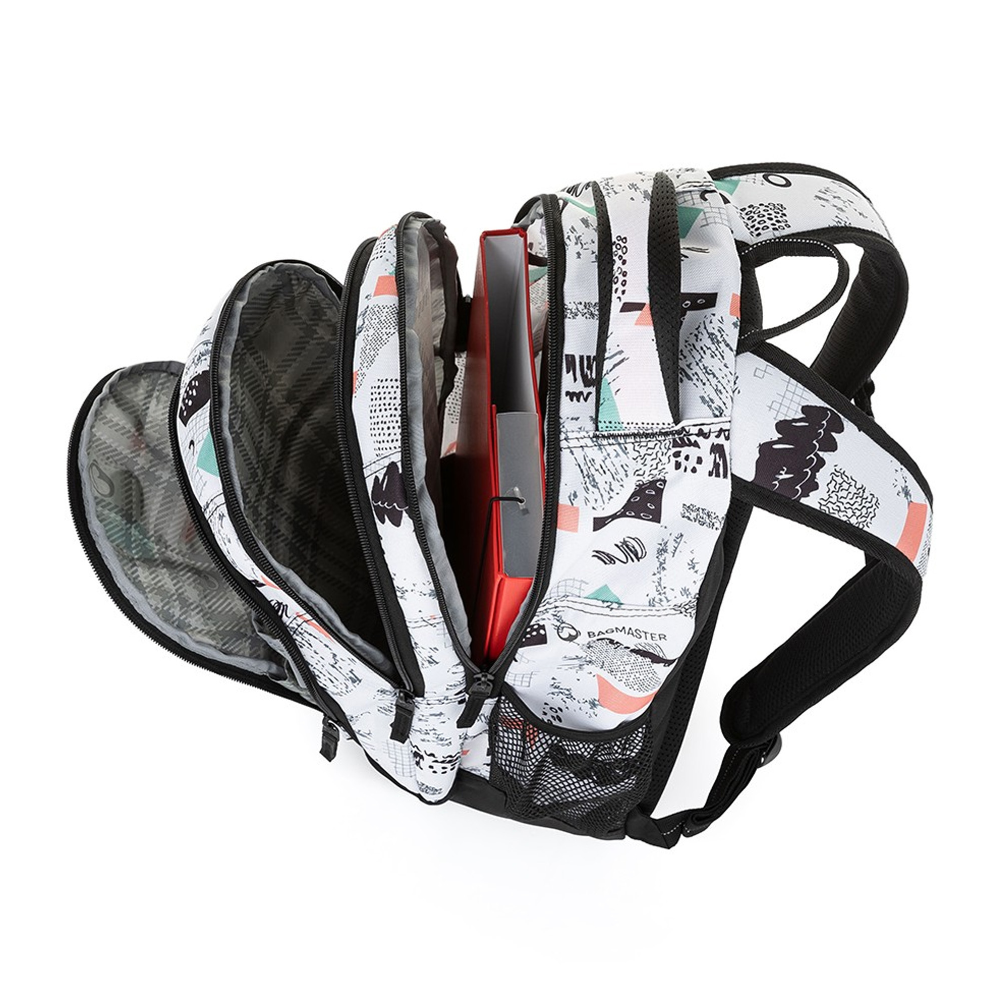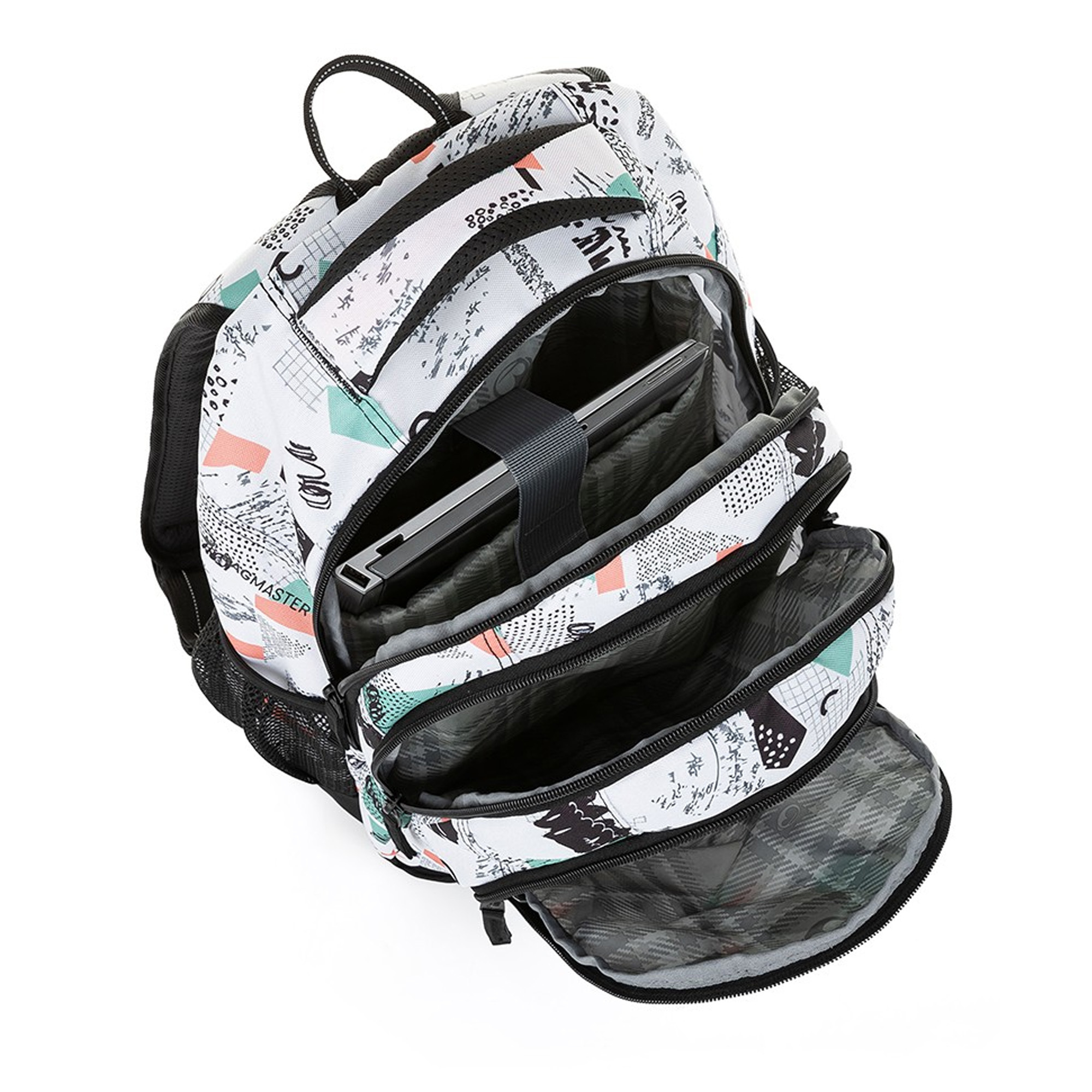 Hlavná priehradka pojme školské zakladače a učebnice formátu A4, a obsahuje polstrované vrecko na notebook do veľkosti 15". Stredná komora poskytuje priestor na zošity a peračník. Predná priehradka s hĺbkou 23 cm je ideálna na kľúče, školský čip, peňaženku a desiatu, s vnútorným sieťovaným vreckom na zips a vreckom na powerbanku s otvorom na kábel.
