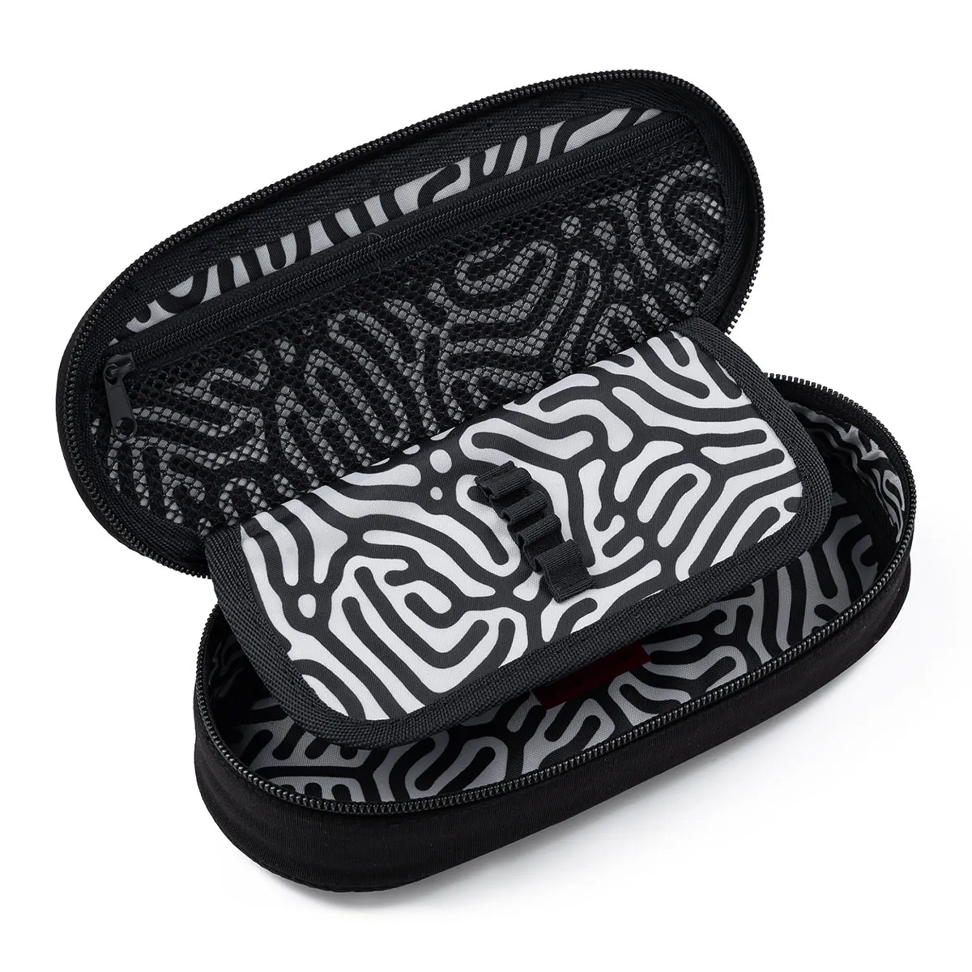 Oválny peračník je ideálnou voľbou pre starších školákov, ktorí potrebujú mať všetky písacie potreby prehľadne usporiadané na jednom mieste. Vnútorný priestor obsahuje sieťované vrecko na zips a praktickú chlopňu s gumičkami na uchytenie až deviatich písacích potrieb, ktoré chcete mať vždy poruke. Pod chlopňou sa nachádza dostatok miesta na voľné uloženie ďalších pomôcok, ako sú pastelky, fixky alebo drobnosti. Peračník je polstrovaný, spoľahlivo chráni obsah pred poškodením. Zips s veľkými uškami uľahčuje jednoduché a pohodlné otváranie aj zatváranie.