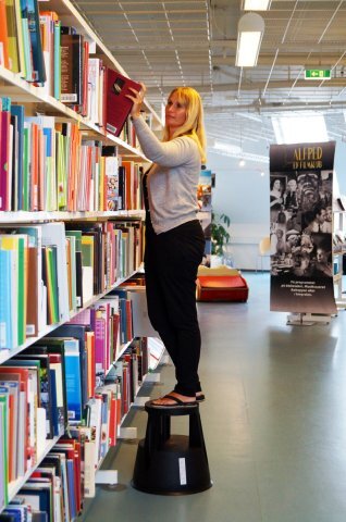 Stabilný 2 stupňový mobilný schodík s nosnosťou až 150 kg. Kolieska na pružinách (mimo zaťaženia) umožňujú ľahký a tichý presun. Nohy schodíka sú zakončené protišmykovou gumou, ktoré zaručujú stabilitu a bezpečnosť. Výšky: 40,4 mm. Materiál hliník.