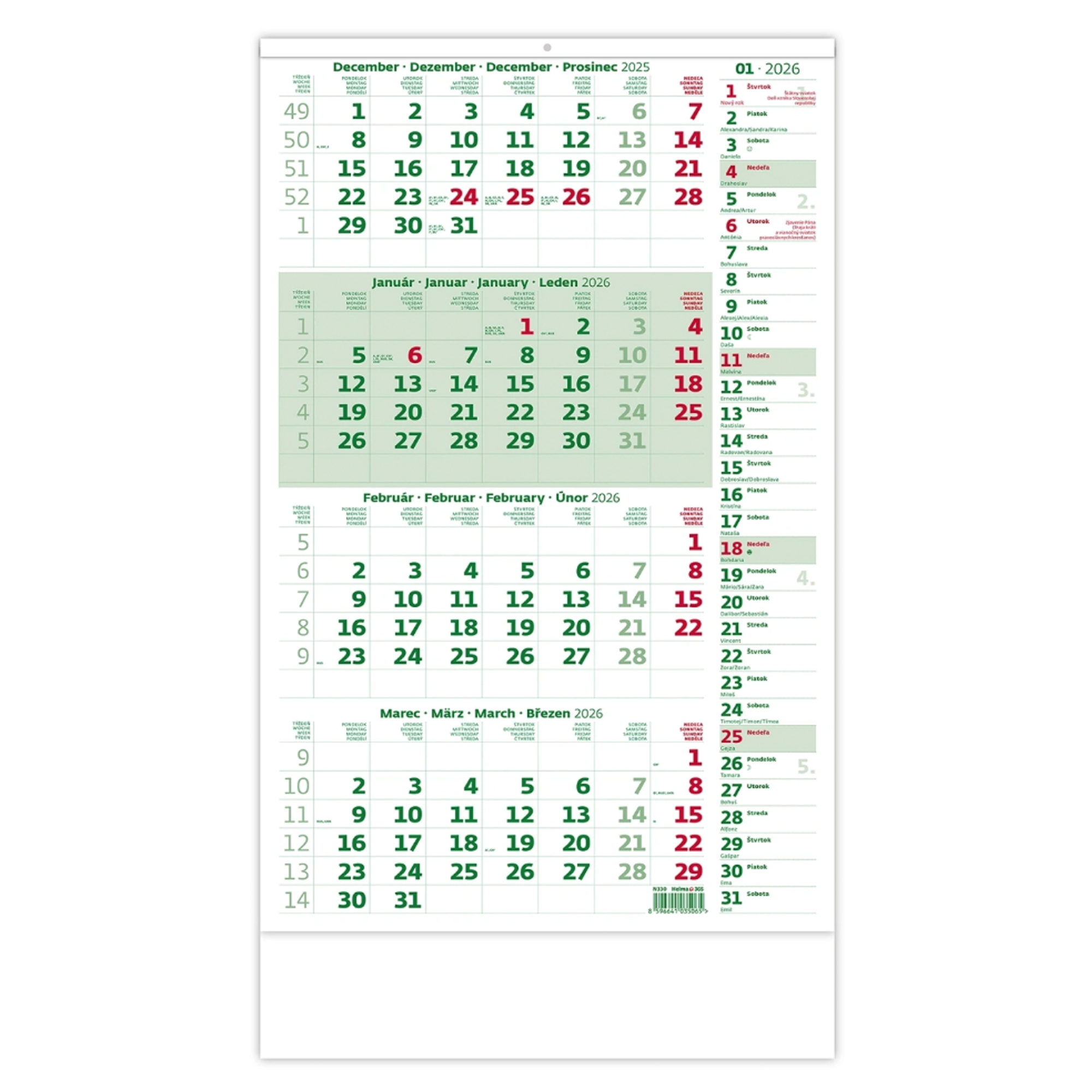 Štvormesačný kalendár zelený s poznámkami 2026, N330-26