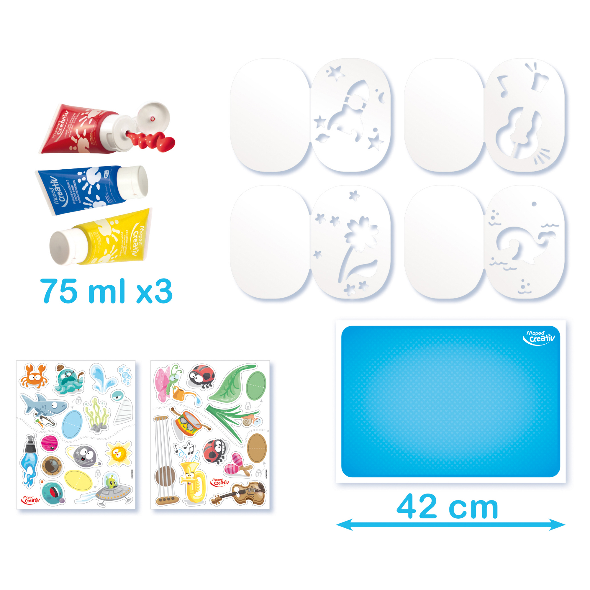 Detská kreatívna súprava ponúka nekonečné možnosti pre vašich malých umelcov už od 2 rokov! Obsahuje 3 farby v tube pre maľovanie prstami s celkovým obsahom 75 ml, 4 pracovné listy z kartónu na jedno použitie, 2 sady so samolepkami a 1 textilnú podložku. Pracovné listy sú navrhnuté tak, aby umožnili deťom vyjadriť svoju kreativitu bez obmedzení. Súprava je balená v praktickom kufríku, ktorý je ľahko otvárateľný aj pre malé deti, čo z neho robí ideálnu voľbu pre domáce alebo cestovné kreatívne aktivity. Táto kreatívna súprava je vhodná pre deti už od 2 rokov a poskytuje nielen zábavu, ale aj podporu rozvoja ich motorických zručností a kreativity. Investujte do tejto fantastické sady a nechajte vaše deti objaviť svoj umelecký talent!