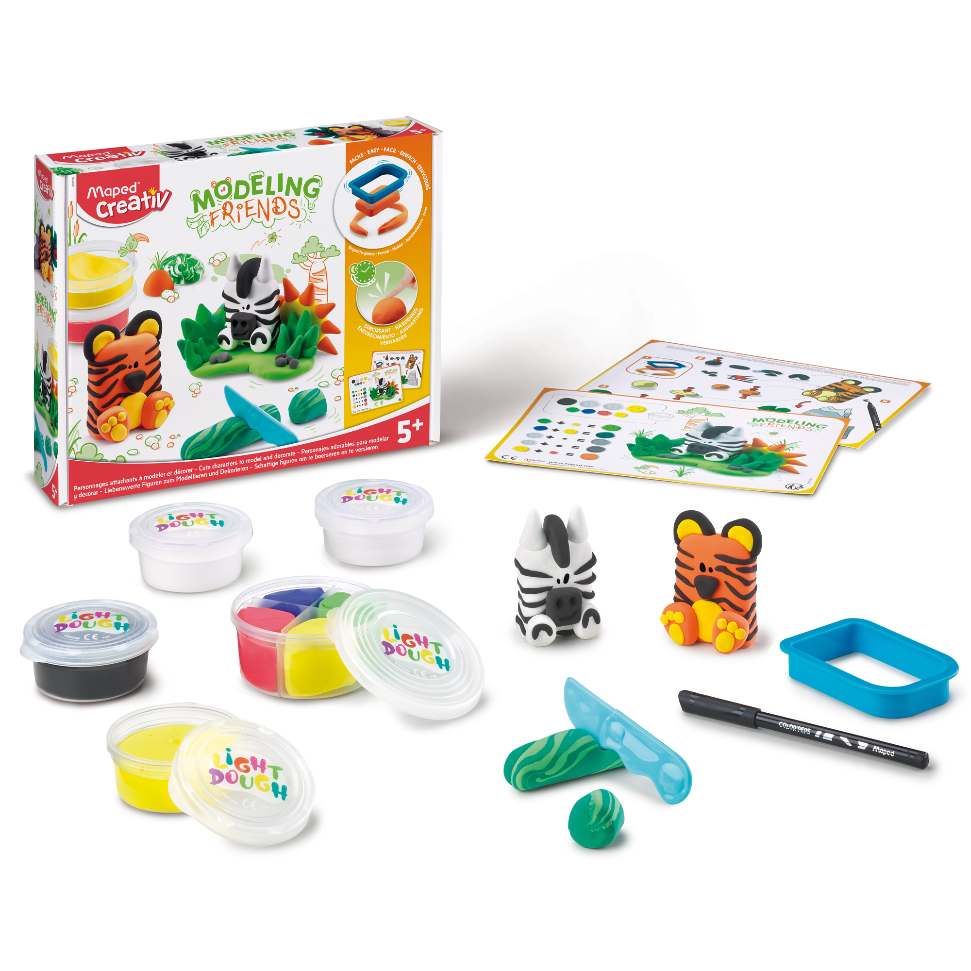 Detská kreatívna súprava Maped Creativ Modeling je ideálnym spoločníkom pre deti od 5 rokov, ktoré radi vytvárajú a modelujú. Táto zábavná súprava umožňuje deťom vytvoriť roztomilé figúrky tigra a zebry pomocou tvarovacej formy a modelovacej hmoty.