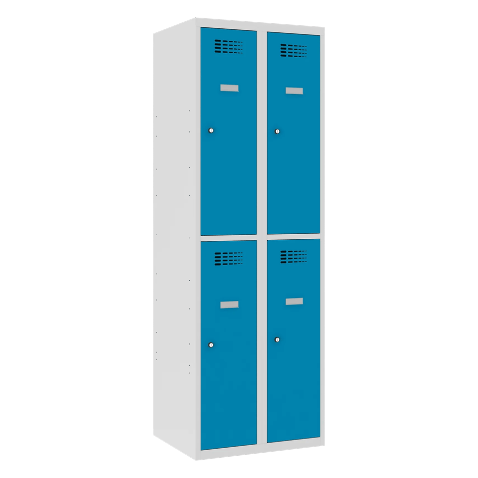 Kovová skriňa s uzamykateľnými priehradkami. Skriňa je zváraná z ocelového plechu. Povrchová úprava je kvalitnou práškovou farbou. Jednotlivé oddiely sú odvetrávané štrbinami vo dverách. Vnútorné vybavenie zahŕňa tyč s dvoma háčikmi na zavesenie oblečenia a samolepiaci držiak na menovku. Hladký povrch poličky bez okraja uľahčuje čistenie vnútorného priestoru. Skriňa má všestrané použitie.