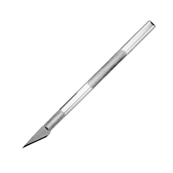 Celokovový skalpeľ s výmennou čepeľou na precízne orezávanie. Dlžka 160 mm x priemer 8 mm.