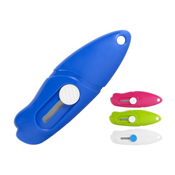 Mini vreckový orezávaci nôž so zasúvateľnou čepeľou. Čepeľ má mechanizmus bezpečnostného zámku. Veľký pomocník pri práci v sklade, v predajni pri otváraní krabíc. Používa vymeniteľné čepele. Vyrobené z plastu