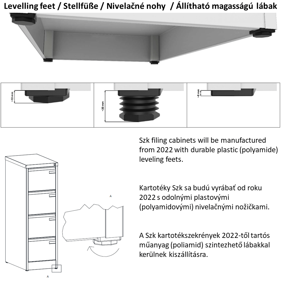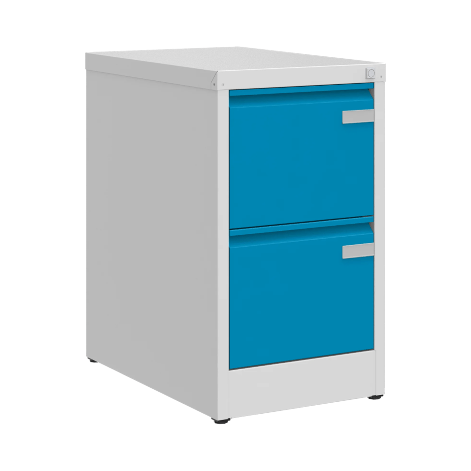 Kovová zásuvková kartotéka je vyrobená z kvalitného oceľového plechu povrchovo upraveného práškovou farbou v odtieni šedej RAL 7035. Zásuvky sú osadené guľovým vedením so 100% výsuvom, čo umožňuje ľahký prístup k dokumentom v celej dĺžke zásuvky. Do jednej zásuvky možno uložiť dokumenty s hmotnosťou až 60 kg. Uzamykanie je riešené centrálne jedným cylindrickým zámkom. Zásuvky sú prispôsobené na použitie závesných obalov, ktoré umožňujú usporiadané zakladanie jednotlivých listov bez nebezpečia zničenia či pomačkania dokumentov.