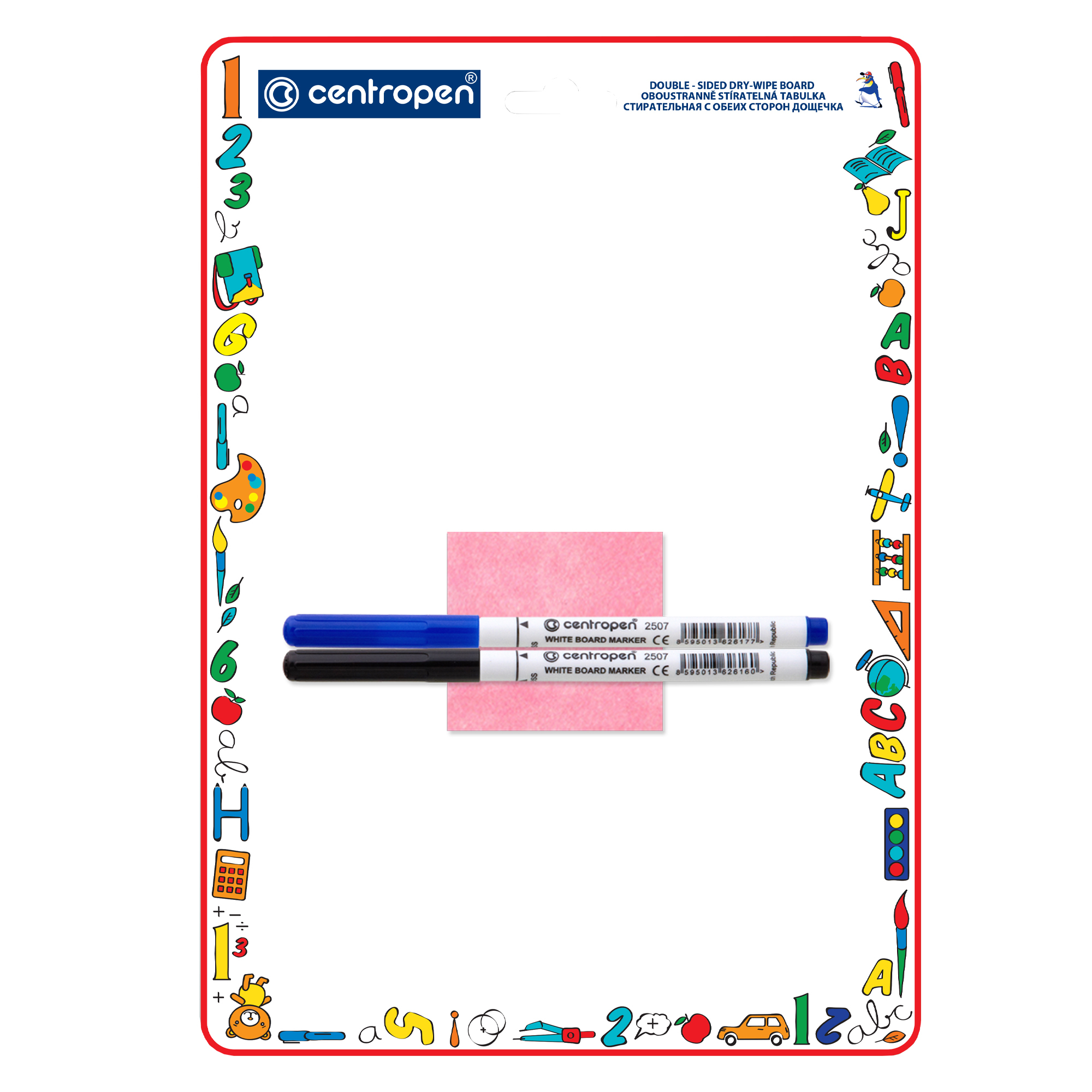 Ideálna pomôcka pre nácvik správneho písania. Obojstranná tabula A4 s popisovatelným a stierateľným povrchom. Linajky a štvorčeky na prednej strane, na druhej strane je čistá plocha na kreslenie. Balenie obsahuje tabuľku A4, stieraciu textíliu a dva popisovače 2507 s ERGO držaním. Popisovače obsahujú zdravotne neškodný, za sucha stierateľný atrament.