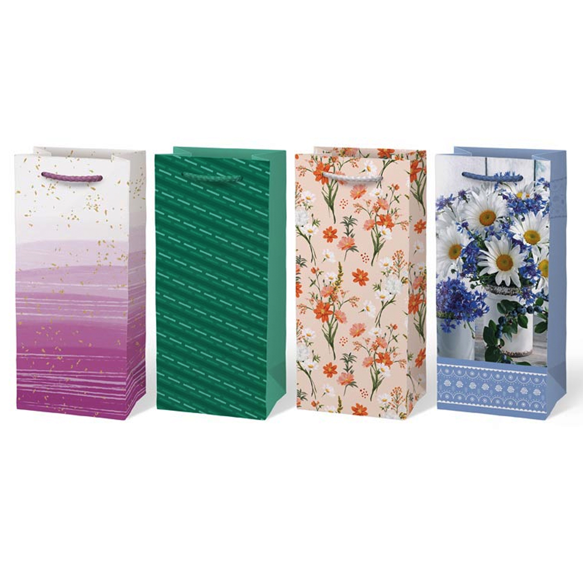 Papierová darčeková taška T3 v rôznych motívoch a farbách. Taška je vybavená držadlami na jednoduché prenášanie a je vhodná na rôzne príležitosti, ako sú narodeniny, sviatky, svadby alebo iné výnimočné udalosti. Pohodlné rukoväte sú vyrobené z pevného materiálu, ktorý zabezpečuje ľahké prenášanie. Ukážte svojim blízkym, že vám na nich záleží, výberom elegantných a štýlových tašiek, ktoré zjednodušujú balenie. Motív: mix motívov Rozmery: 100 x 220 x 55 mm Dodávame v mixe 4 motívov podľa skladových zásob. Uvedená cena je za 1 ks.