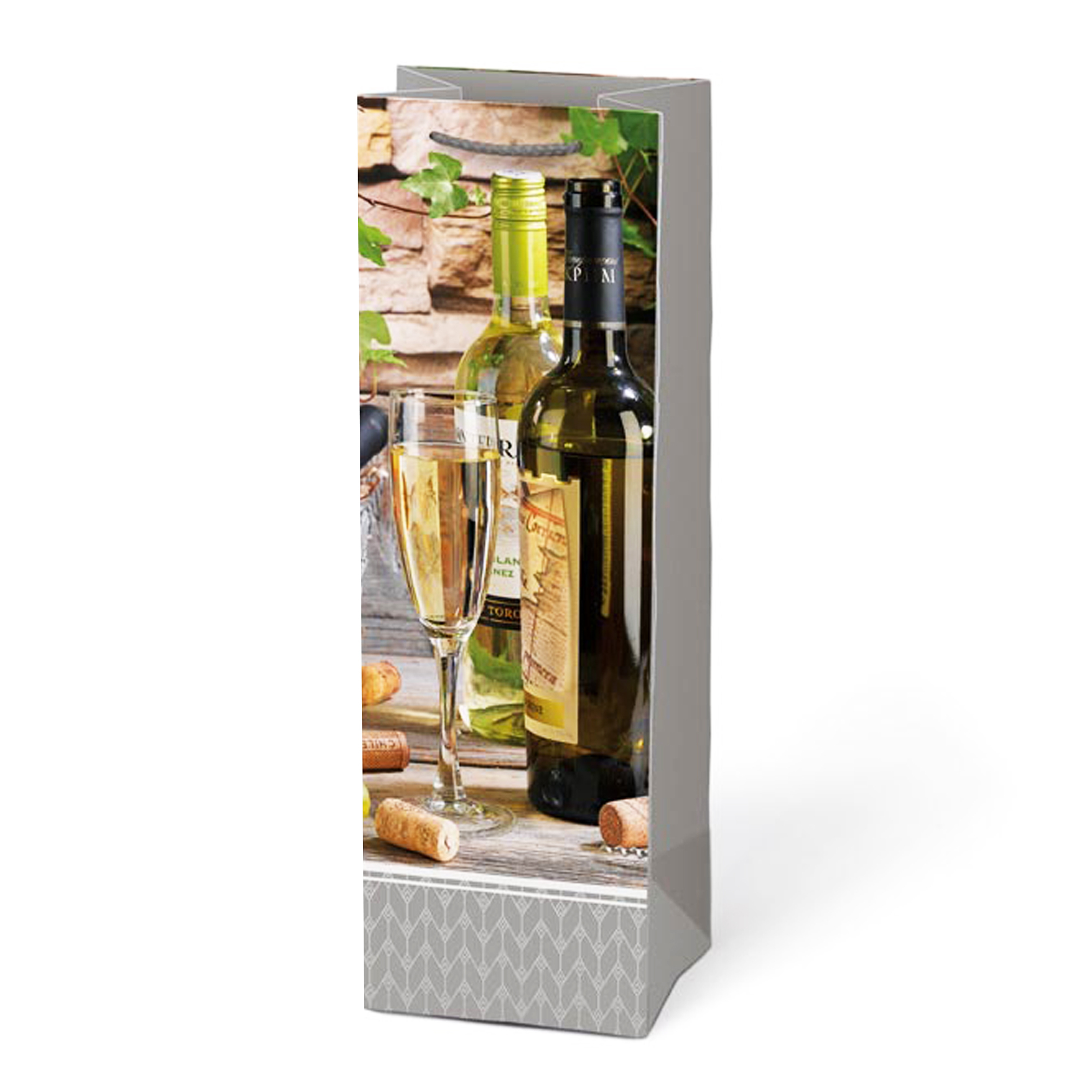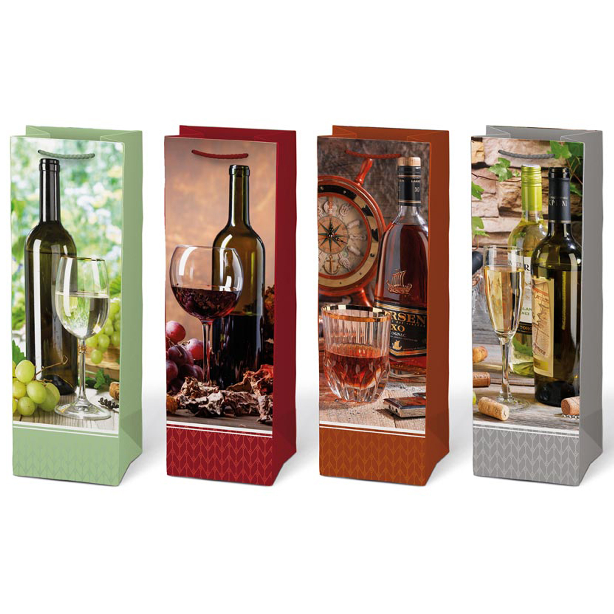 Darčeková papierová taška T12 v kombinácii motívov, z ktorých každý má elegantný a atraktívny dizajn. Je vhodná na rôzne druhy fliaš, nielen na víno. Možno ju použiť aj na likéry, oleje alebo iné nápoje vo fľašiach. Táto štýlová taška je vybavená pevnou rukoväťou na jednoduché a pohodlné prenášanie. Používanie darčekovej tašky eliminuje potrebu zložitého balenia. Darujte fľašu originálnym a elegantným spôsobom. Motív: mix motívov Rozmery: 120 x 360 x 100 mm Dodávame v mixe 4 ks podľa skladových zásob. Uvedená cena je za 1 ks.