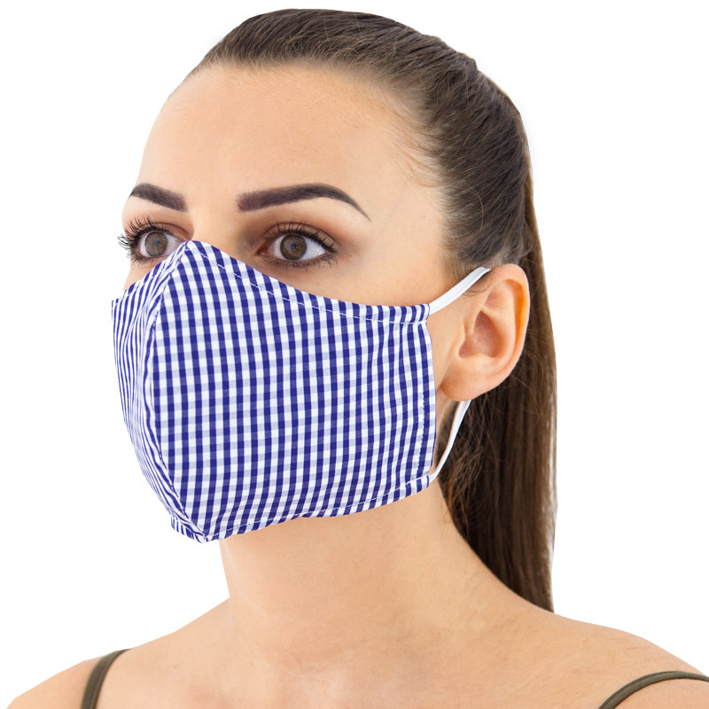 Textilne rúško dvojvrstvové tvarované modrý kockovaný, certifikované