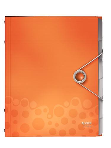 Triediaca kniha Leitz BEBOP formát A4 v žiarivých farbách s perleťovým efektom pre triedenie a organizáciu dokumentov. Atraktívne uzatváranie knihy na gumičku pre bežný prenos. 3 chlopne na zadnej strane knihy pre uloženie voľných papierov. Na chlopni obsahuje register pre rýchly prístup k popísanému obsahu. Rozmery: 260 x 17 x 320 mm Kapacita: 200 listov Farba: oranžová