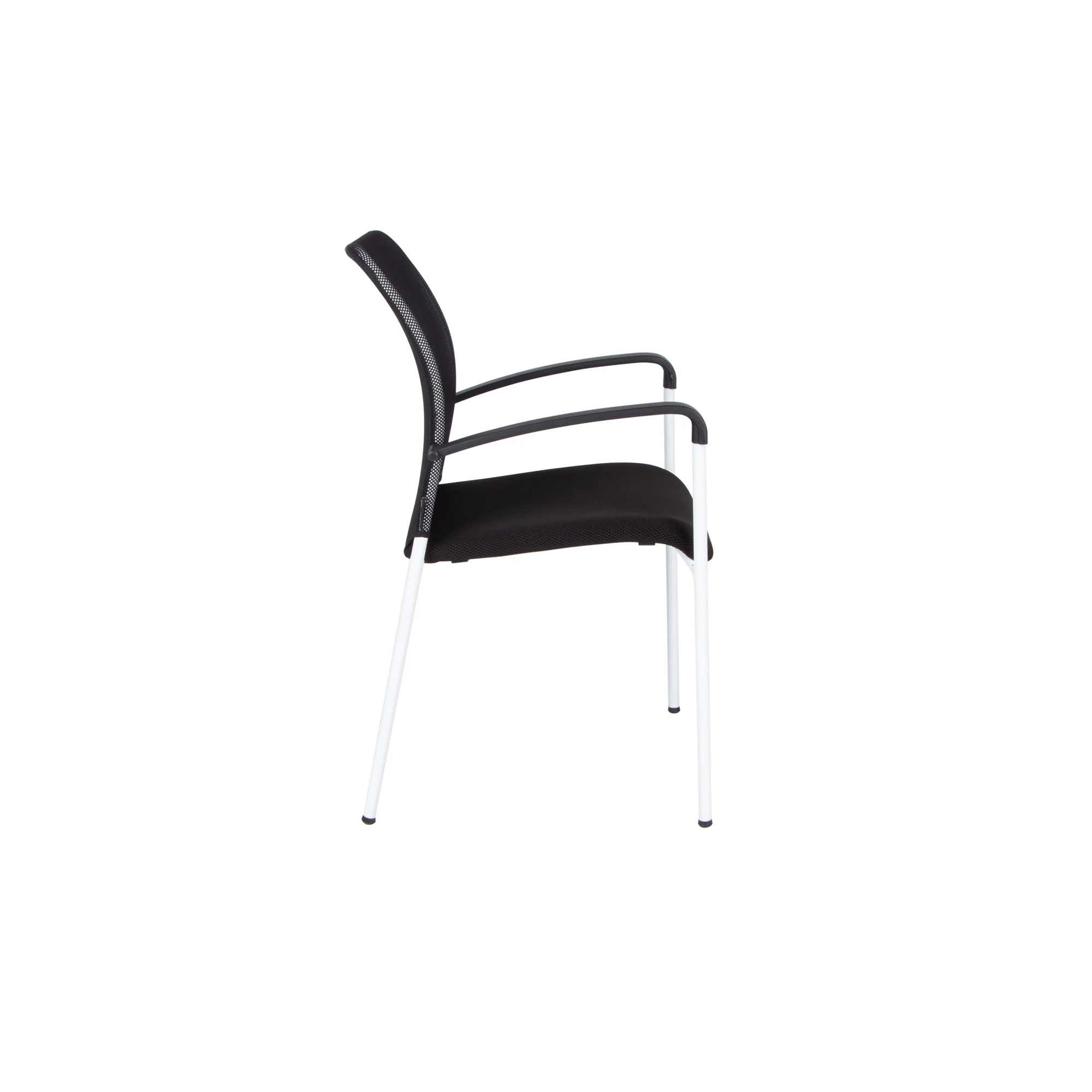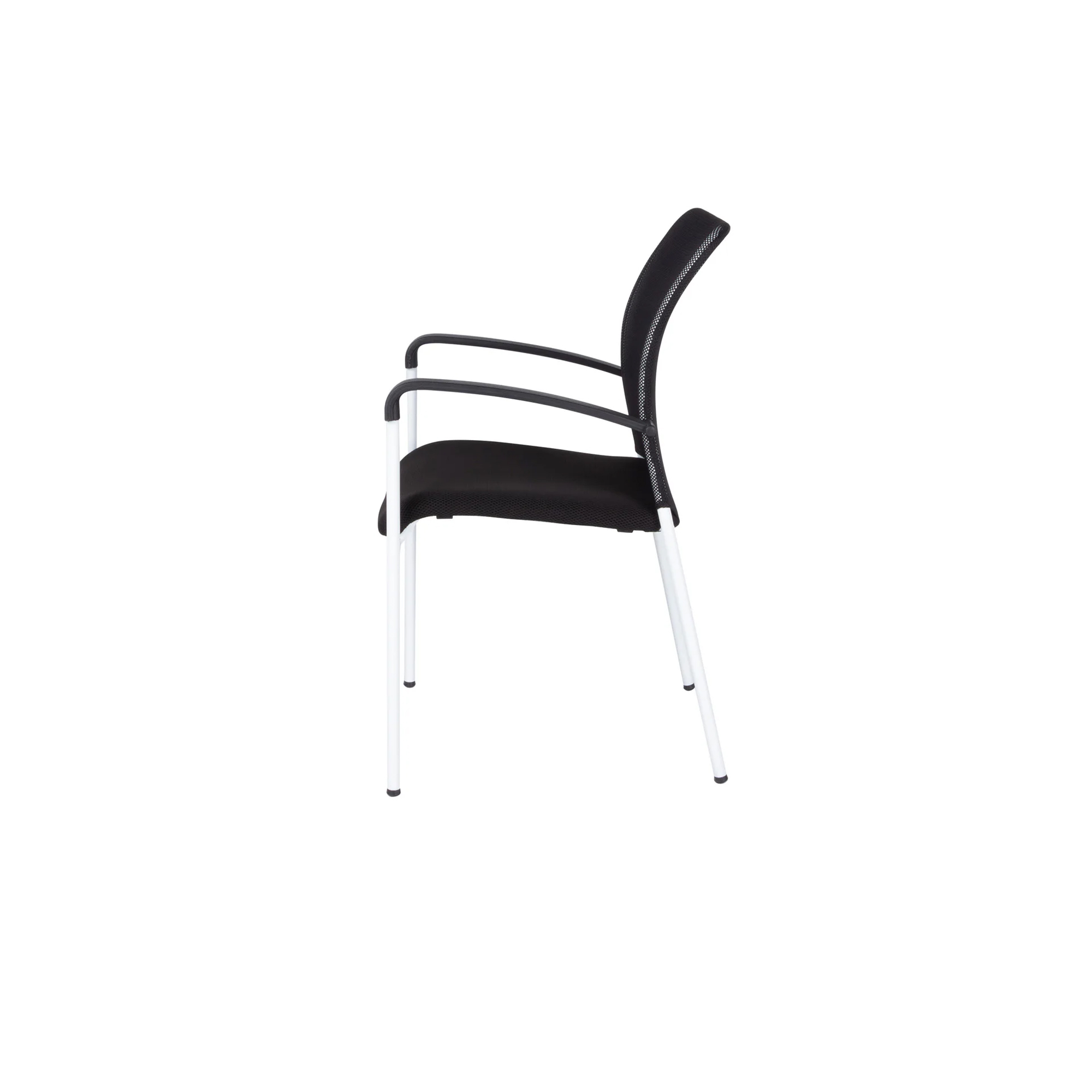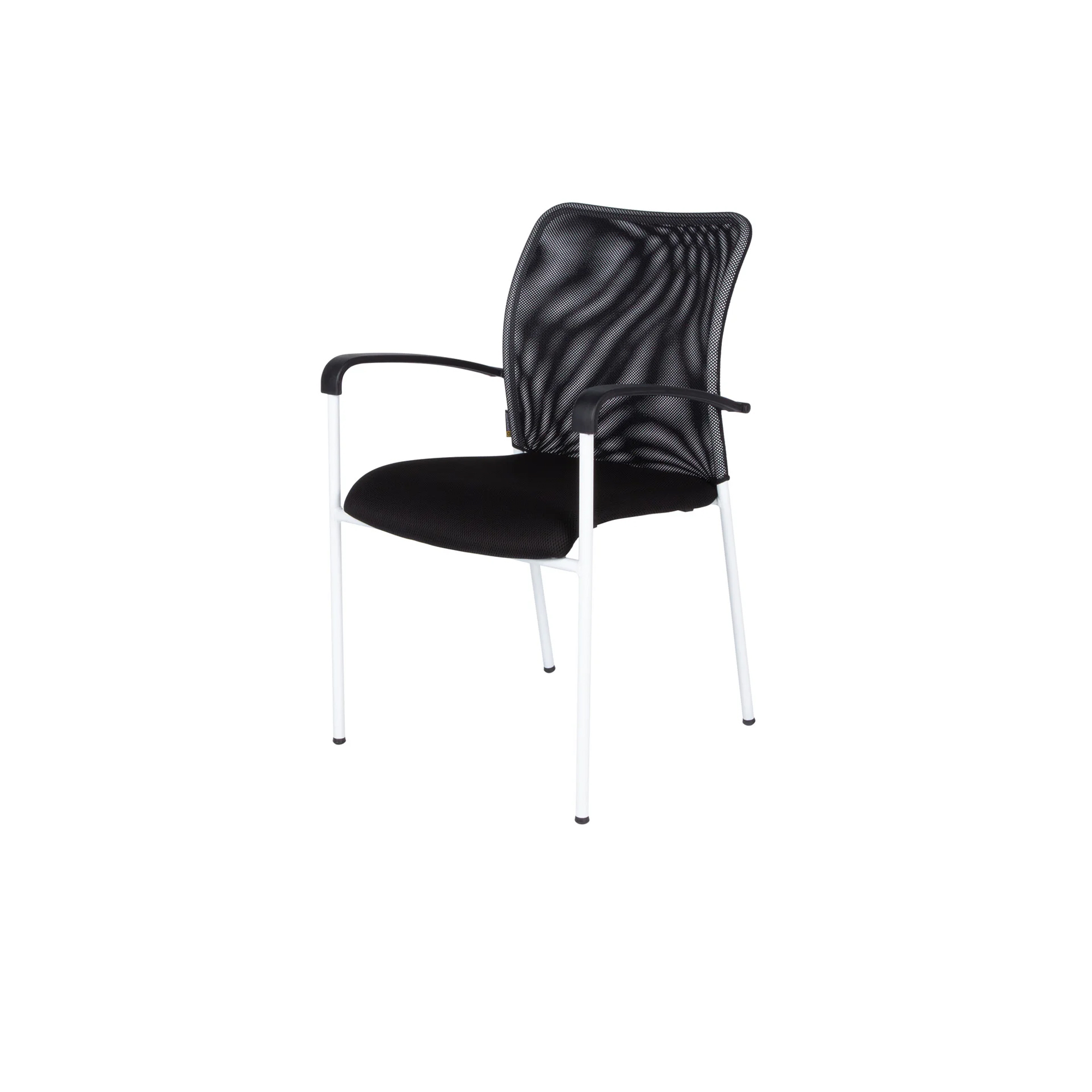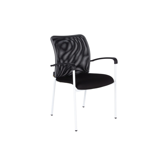 Samonosná sieťovina zaisťuje celodenné vetranie chrbta. Biela farba rámu rokovacej stoličky. Sieťovina aj poťahová látka v čiernej farbe. Stoličky sú sťahovateľné, čím ušetriť veľa priestoru. Certifikát štátnej skúšobne o zhode s ČSN EN 13761:2003 a ČSN EN 1022:2006. Nosnosť stoličky 120 kg. 3 roky záruka