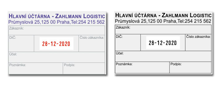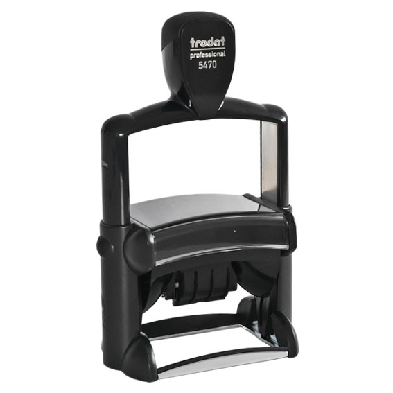 Kovová dátumová samofarbiaca pečiatka s textovou doskou veľkosti 41 x 24 mm.