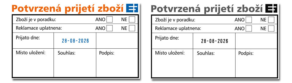 - Farba odtlačku: Čierna, modrá, červená, zelená, fialová a modrá/červená.