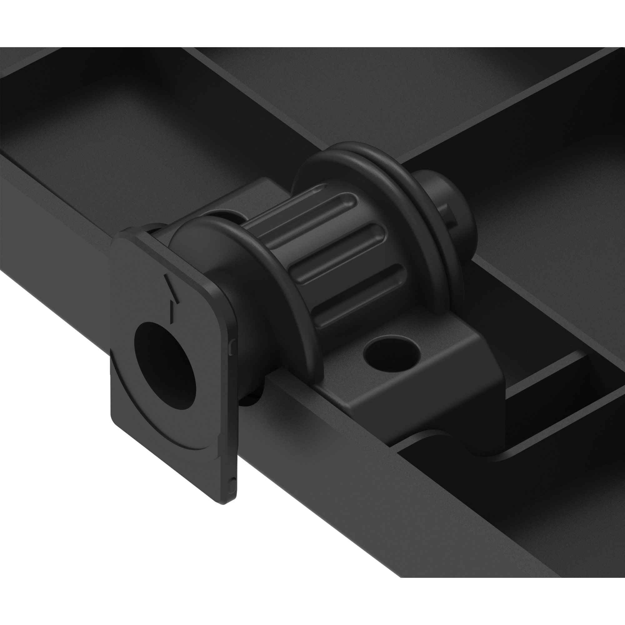 Podpierka chodidiel s nastaviteľnou výškou 6, 9 alebo 12 cm a veľkou nosnou plochou. Základný ergonomický doplnok k vášmu pracovnému stolu. Zlepšuje držanie tela pri sedení a uľavuje chrbtici. vyrobená z pevného plastu. Fraba: Čierna Rozmery: 540 x 350 x 60-120mm