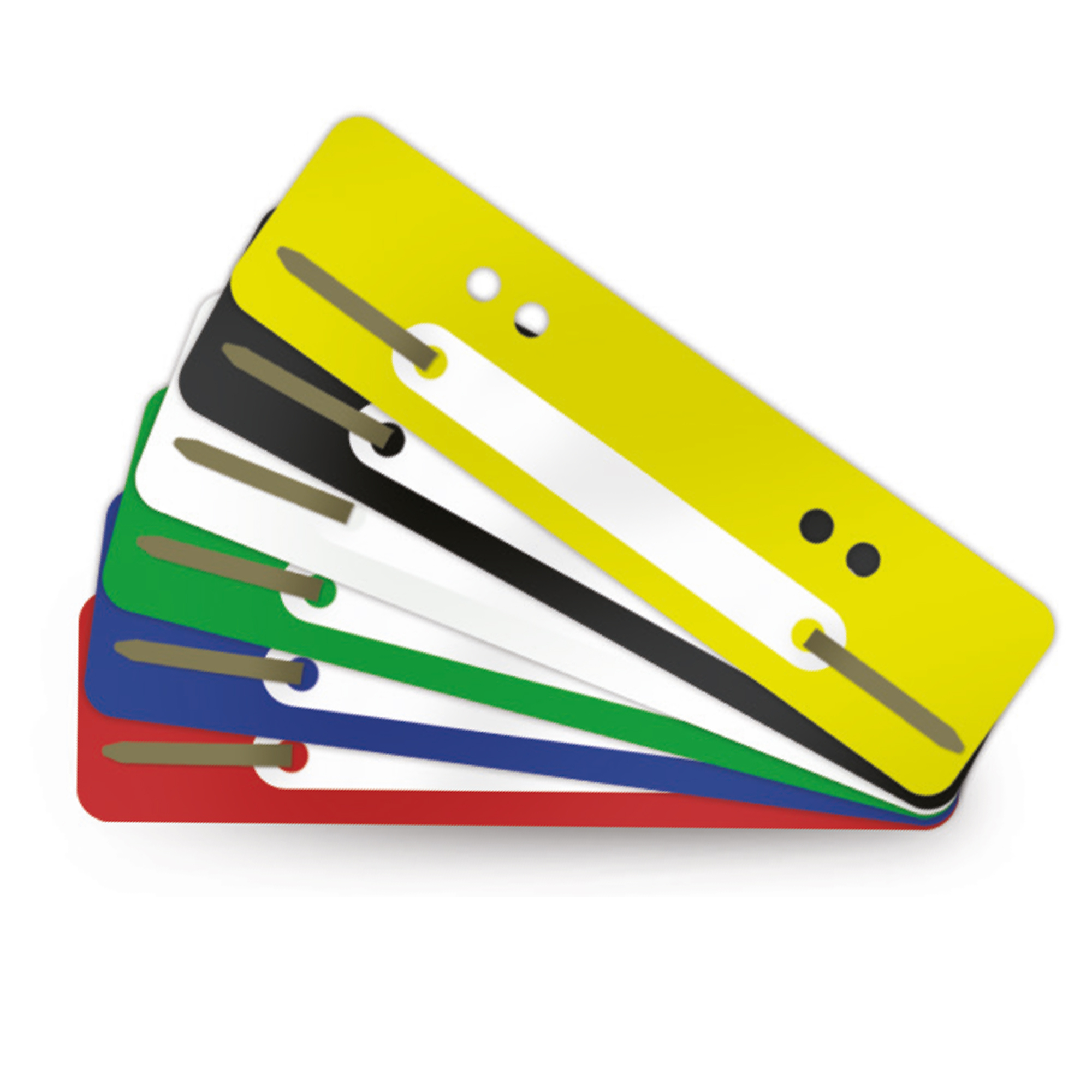 Úchytky, rýchloviazacie spony pre jednoduché, rýchle zviazanie a prehľadné oddelenie dokumentov od iných dokladov s možnosťou vloženia do zoraďovača. Rormer 15 x 3,4 cm. Balenie 25ks.