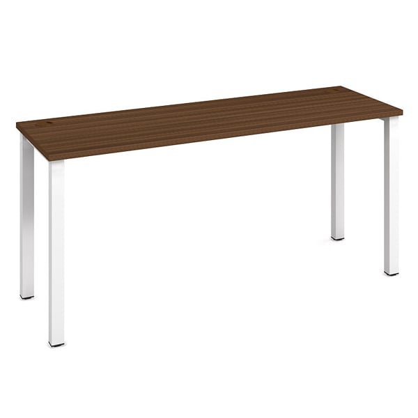 Pracovný stôl UNI s kovovými nohami. Konštrukcia kovovej podnože má zabudované rektifikačné nožičky pre dokonalé vyrovnanie nerovnosti podlahy. Je to dôležité najmä keď niekoľko stolov je umiestnených vedľa seba. Farby pracovného stola: sivá, agát, buk, jelša, višňa, čerešňa, calvados, orech. Farby kovovej konštrukcie: Biela, Čierna RAL 9005, Sivá RAL 9006.