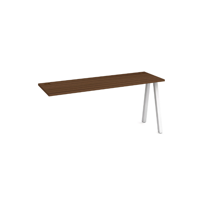Prídavný pracovný stôl160x60 cm s kovovými nohami. Konštrukcia kovovej podnože tvaru A má zabudované rektifikačné nožičky pre dokonalé vyrovnanie nerovnosti podlahy. Je to dôležité najmä keď niekoľko stolov je umiestnených vedľa seba, Prídavný pracovný stôl UNI umožňuje veľkorysé rozšírenie pracovnej plochy do rôznych tvarov, alebo jednoduché tzv. reťazenie. Pri kolmom napojení stolov do tvaru L v mieste spoja sa nepoužije noha. Pod pracovným stolom tak vznikne väčší priestor bez prekážky. Farby pracovného stola: sivá, agát, buk, jelša, dub, čerešňa, orech. Farby kovovej konštrukcie: Biela 9016, Čierna RAL 9005, Sivá RAL 9006.